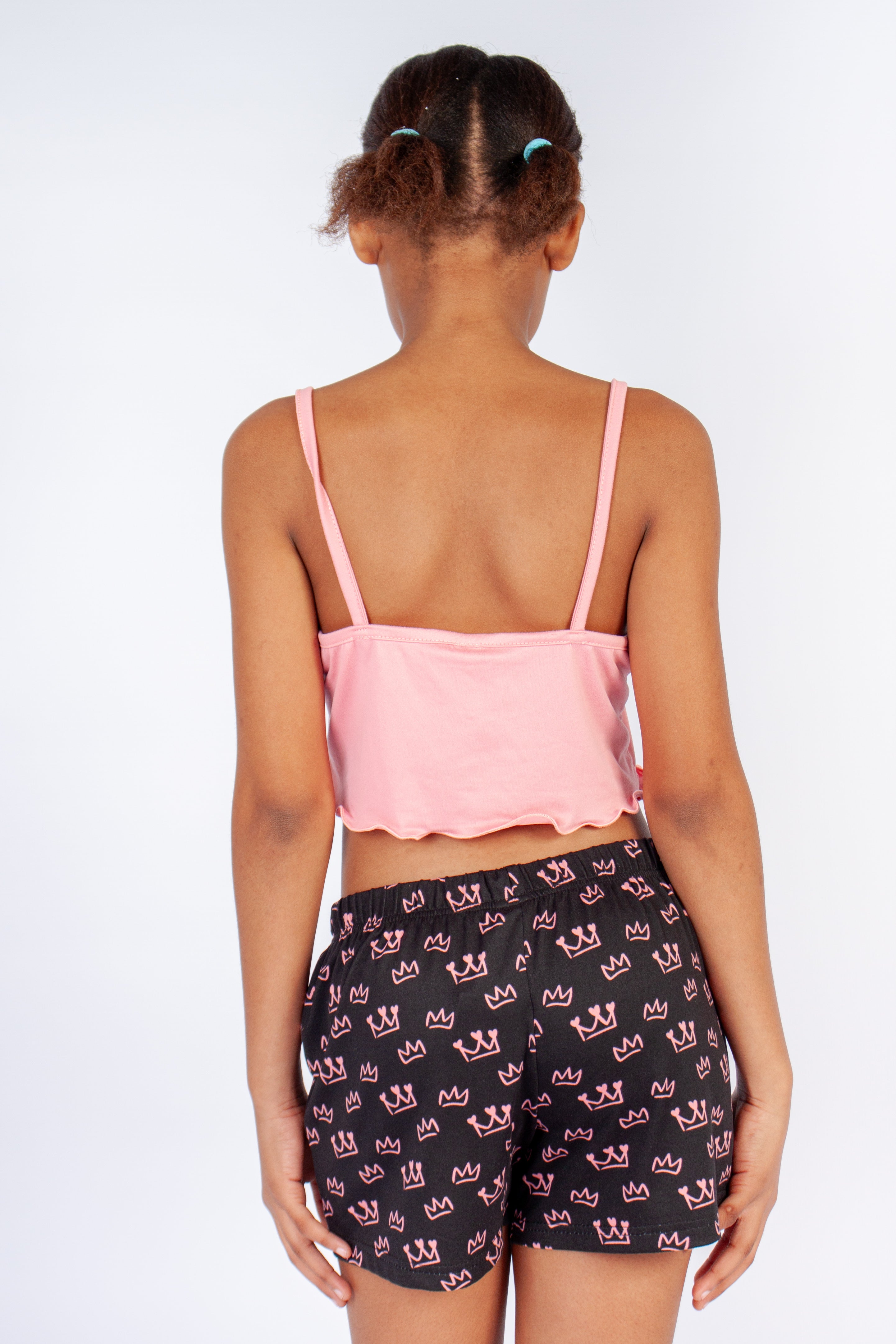 Perfect for lazy lounge days, these light and loose sleep sets feature a classic crew neckline short sleeve top with a printed statement detail and shorts.