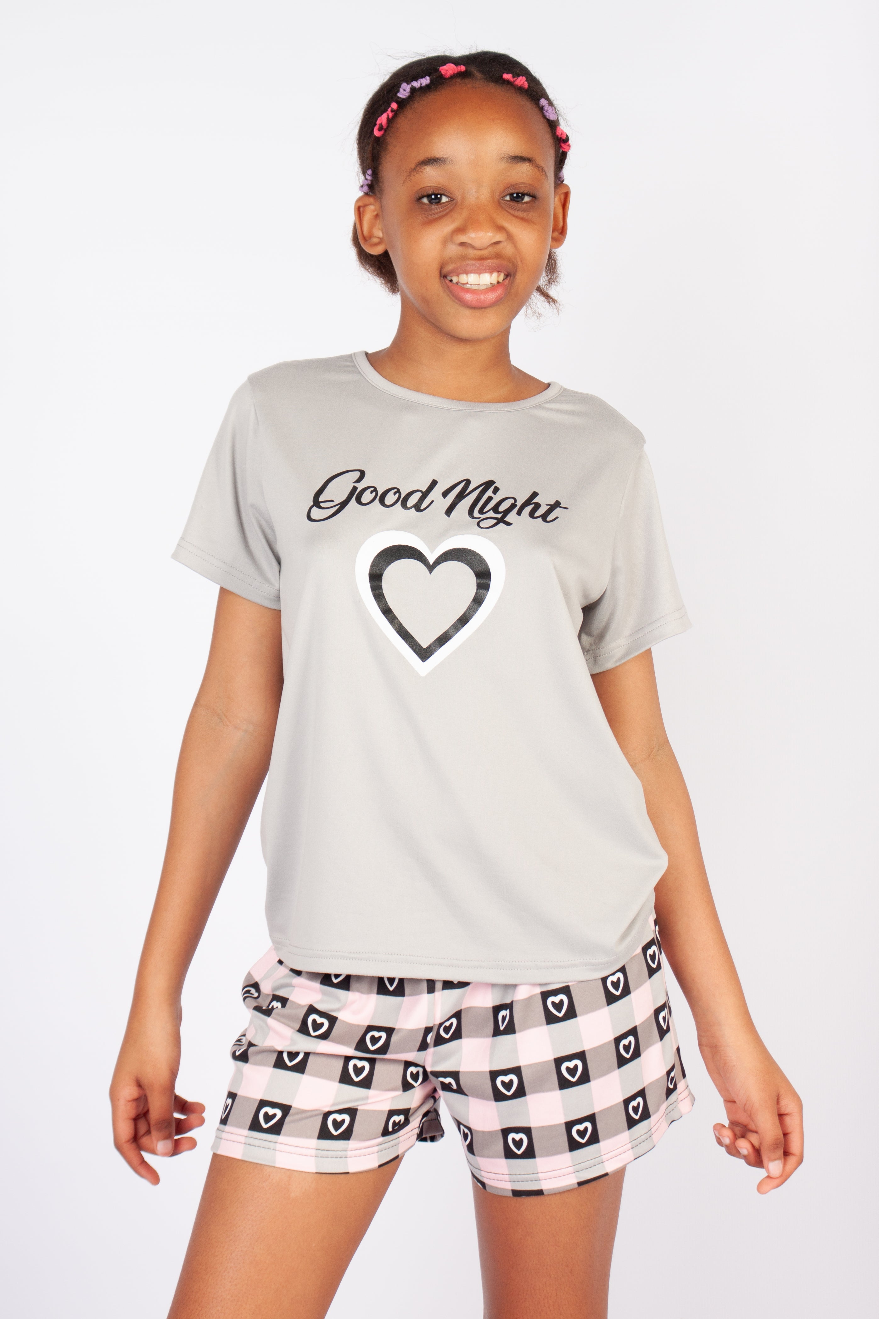 Perfect for lazy lounge days, these light and loose sleep sets feature a classic crew neckline  short sleeve top with a printed statement detail and shorts.
