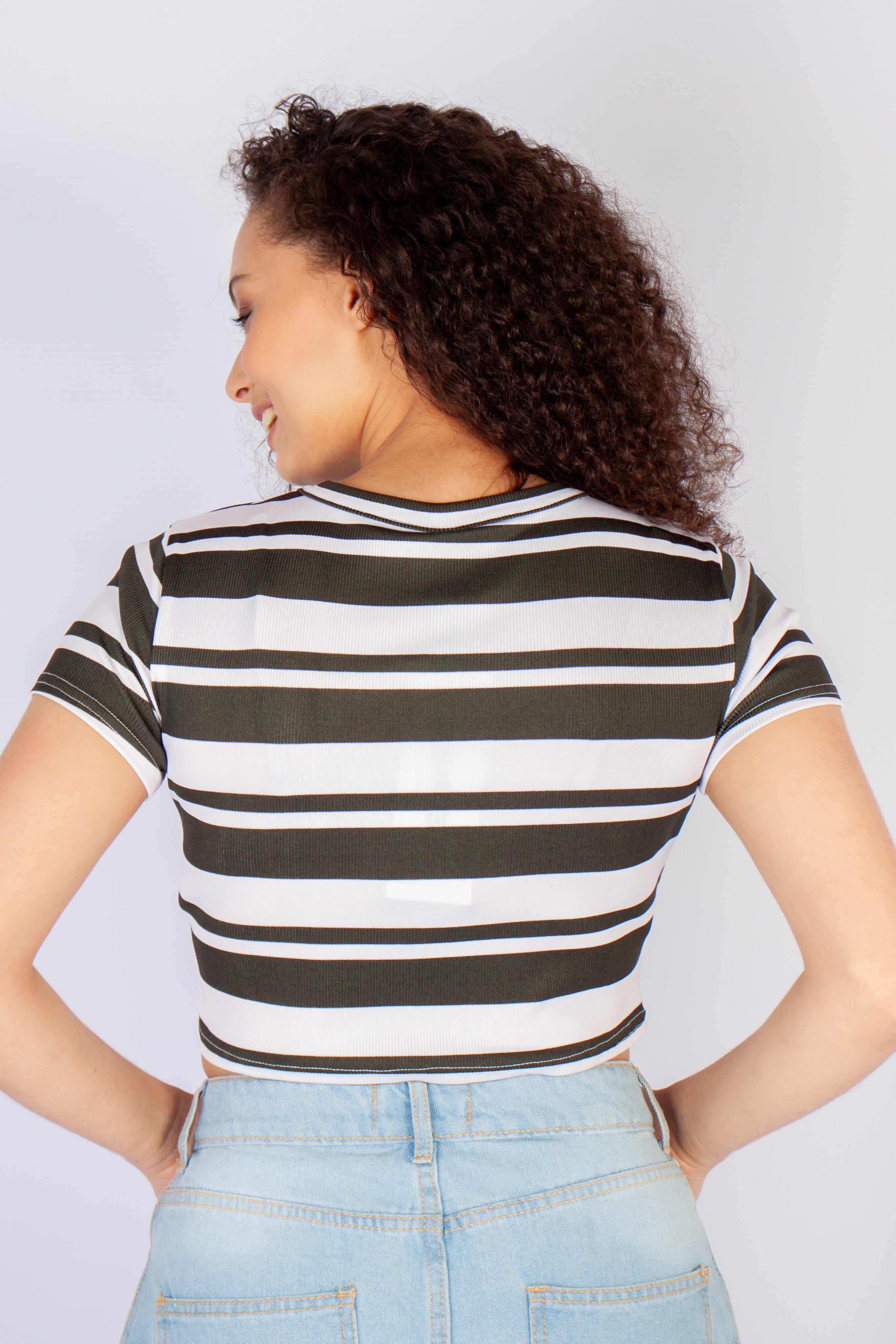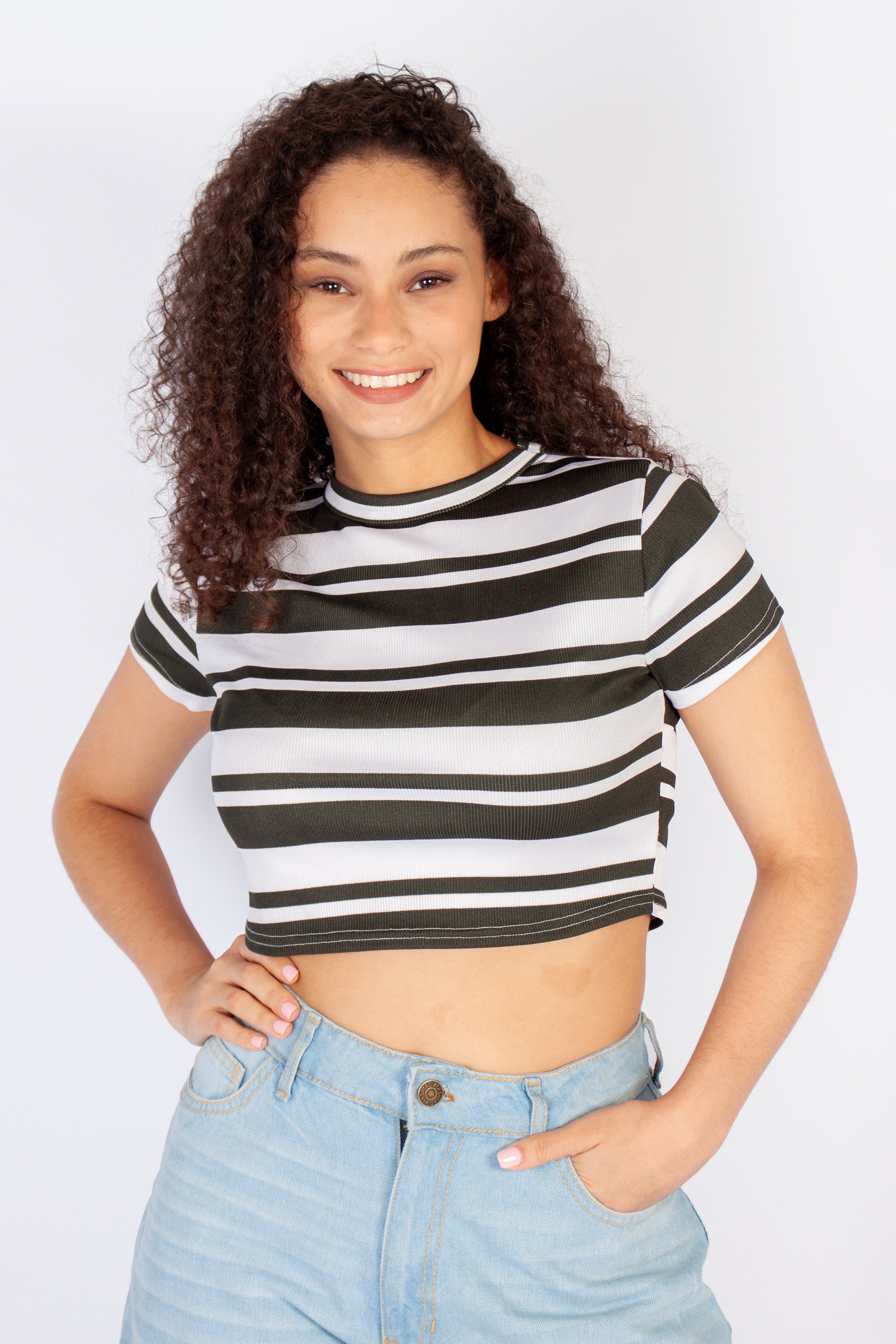 Perfect for an everyday wear! This easy-to-style cropped ribbed t-shirt has a crew neckline and short sleeves.
