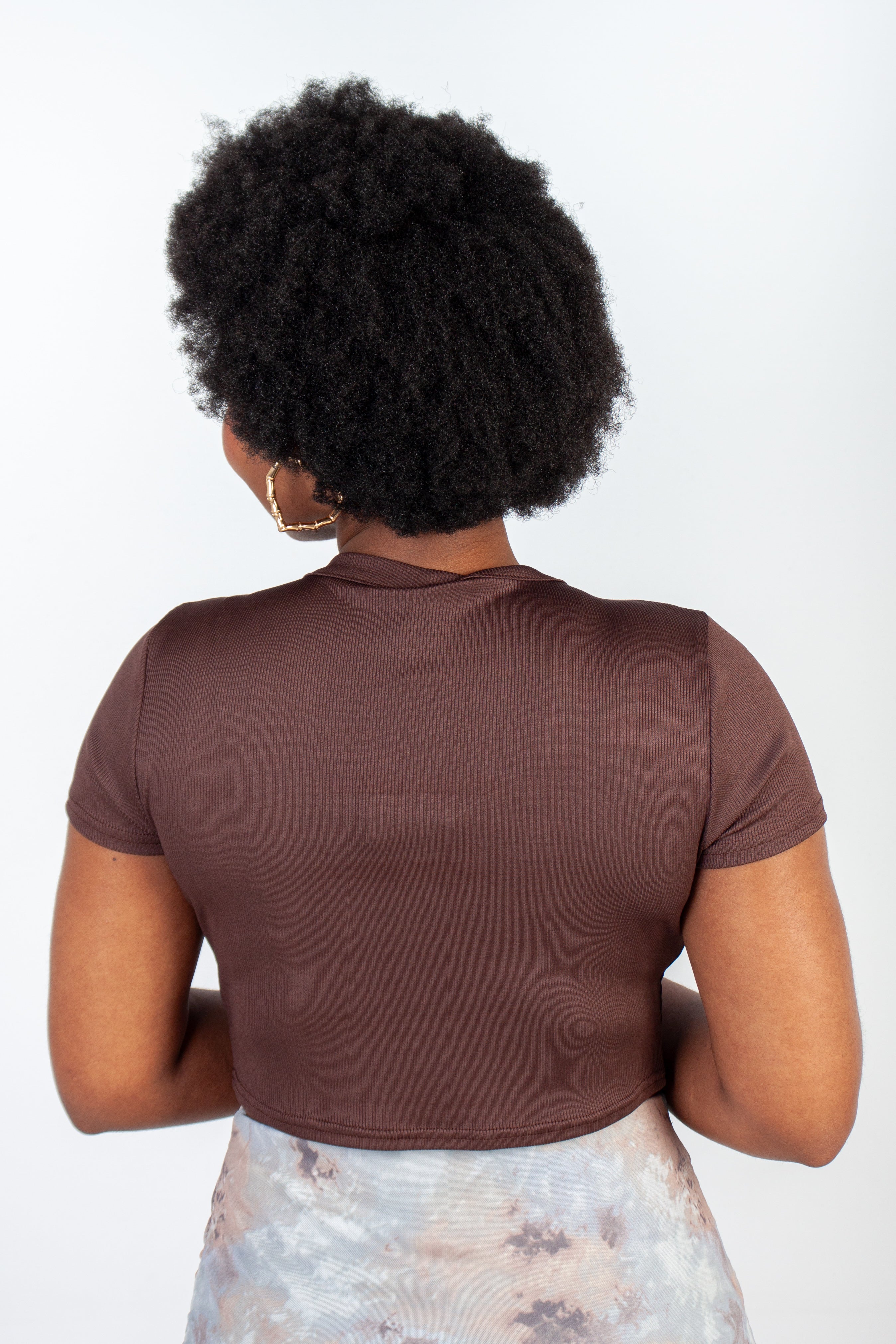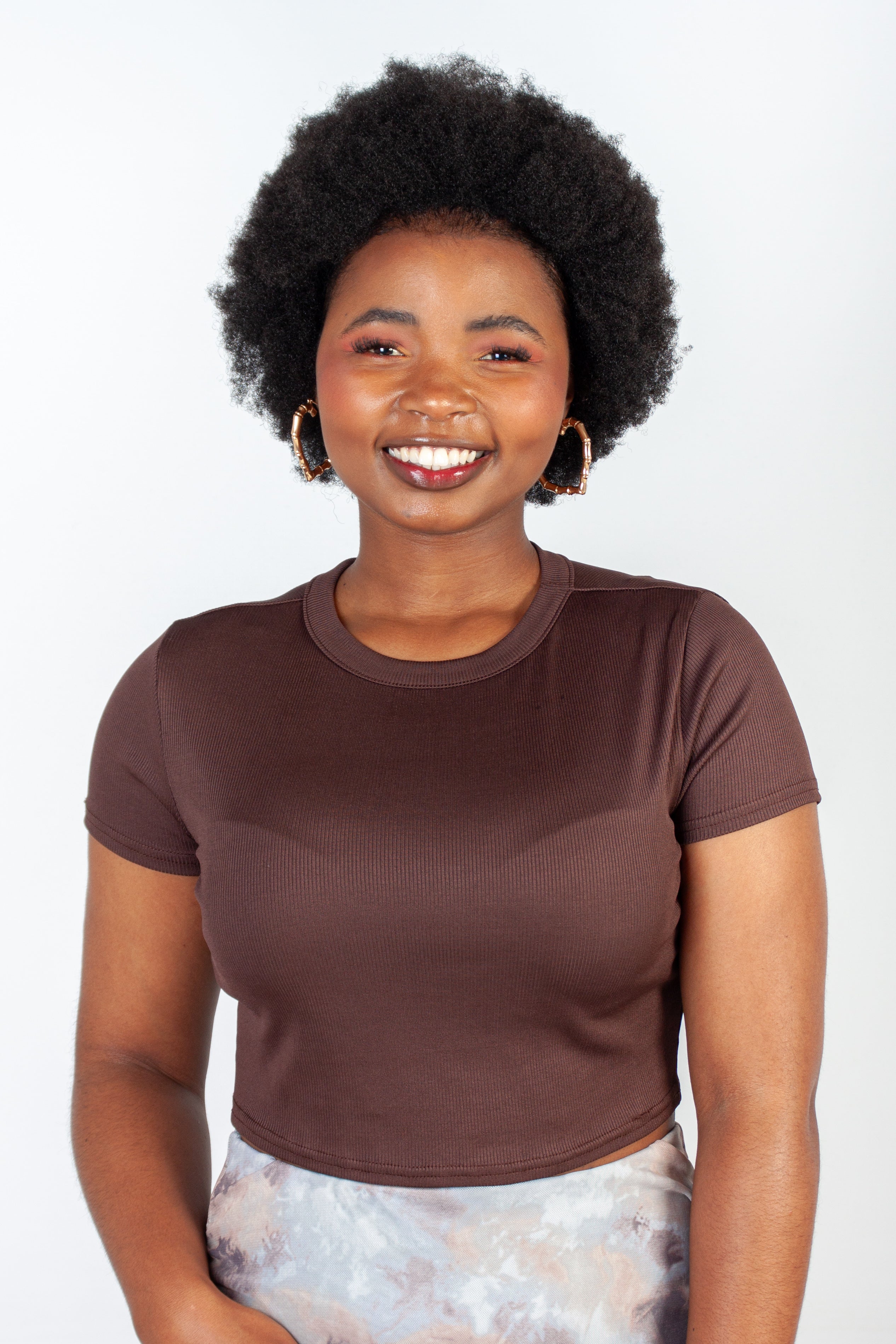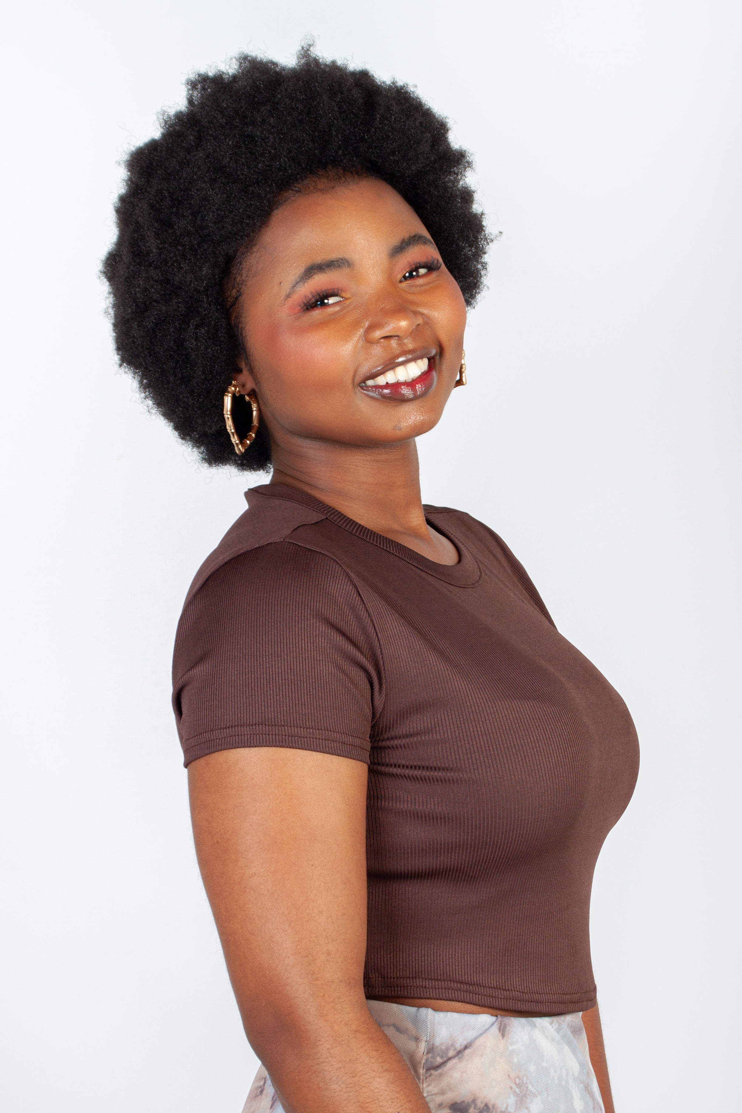 Perfect for an everyday wear! This easy-to-style cropped ribbed t-shirt has a crew neckline and short sleeves.