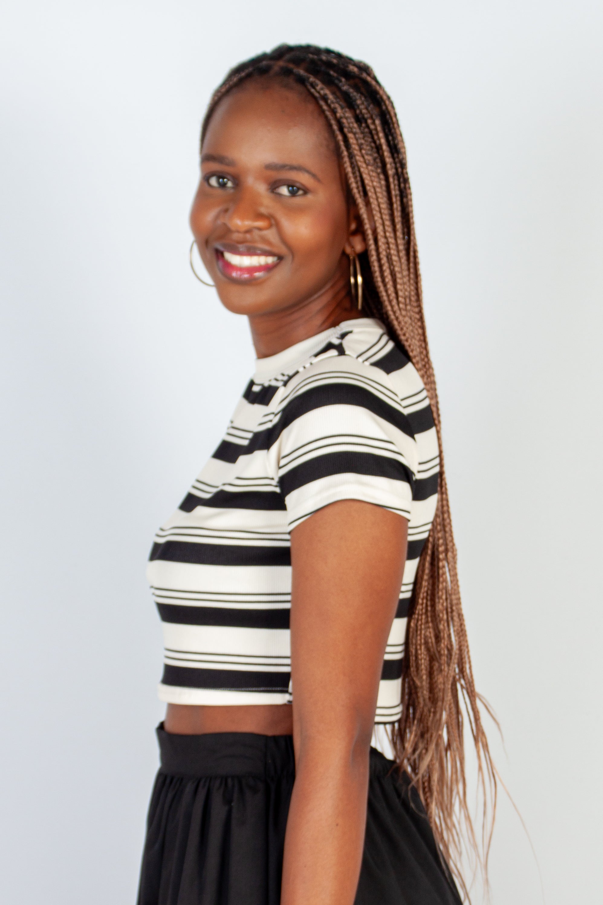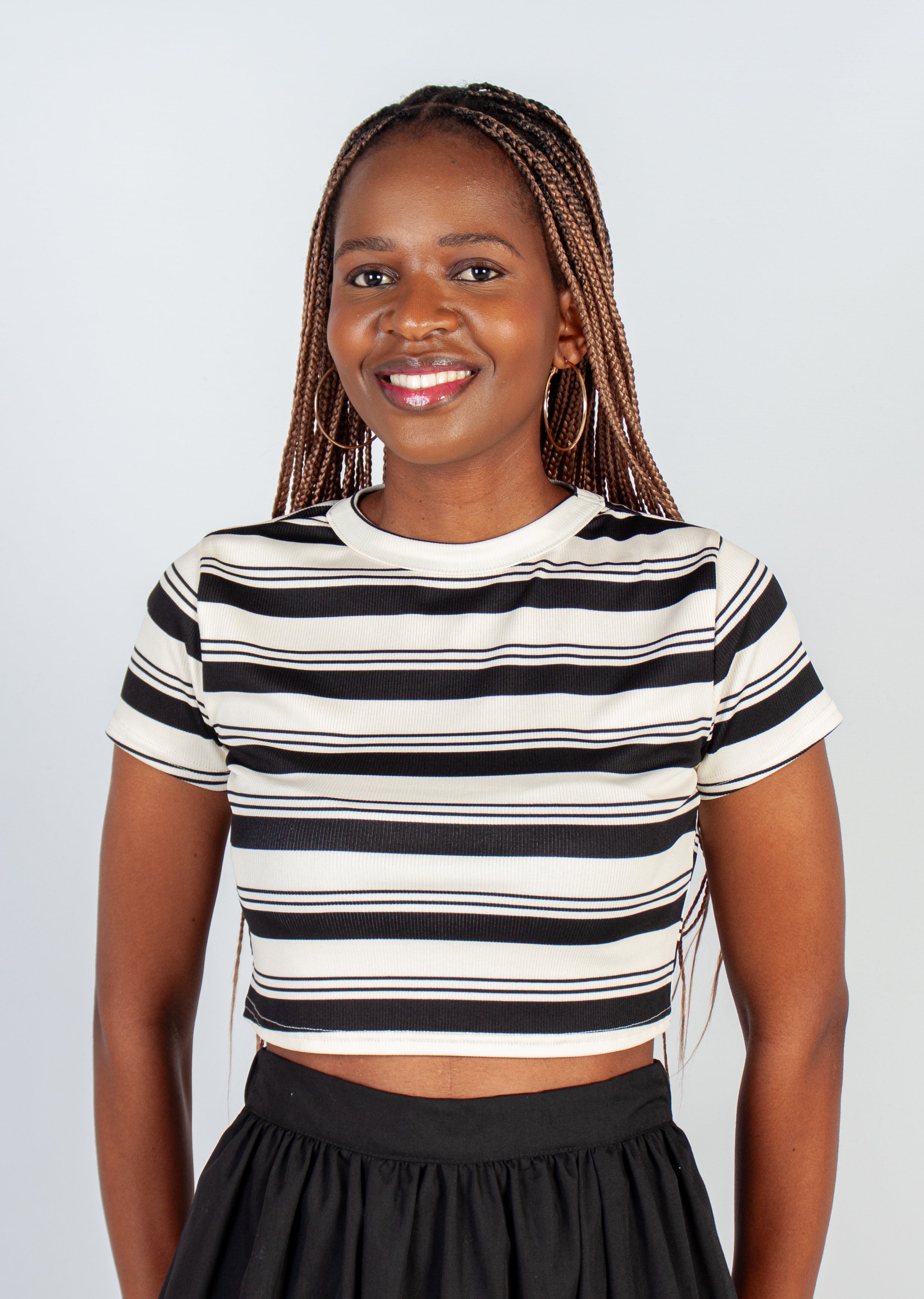 Perfect for an everyday wear! This easy-to-style cropped ribbed t-shirt has a crew neckline and short sleeves.