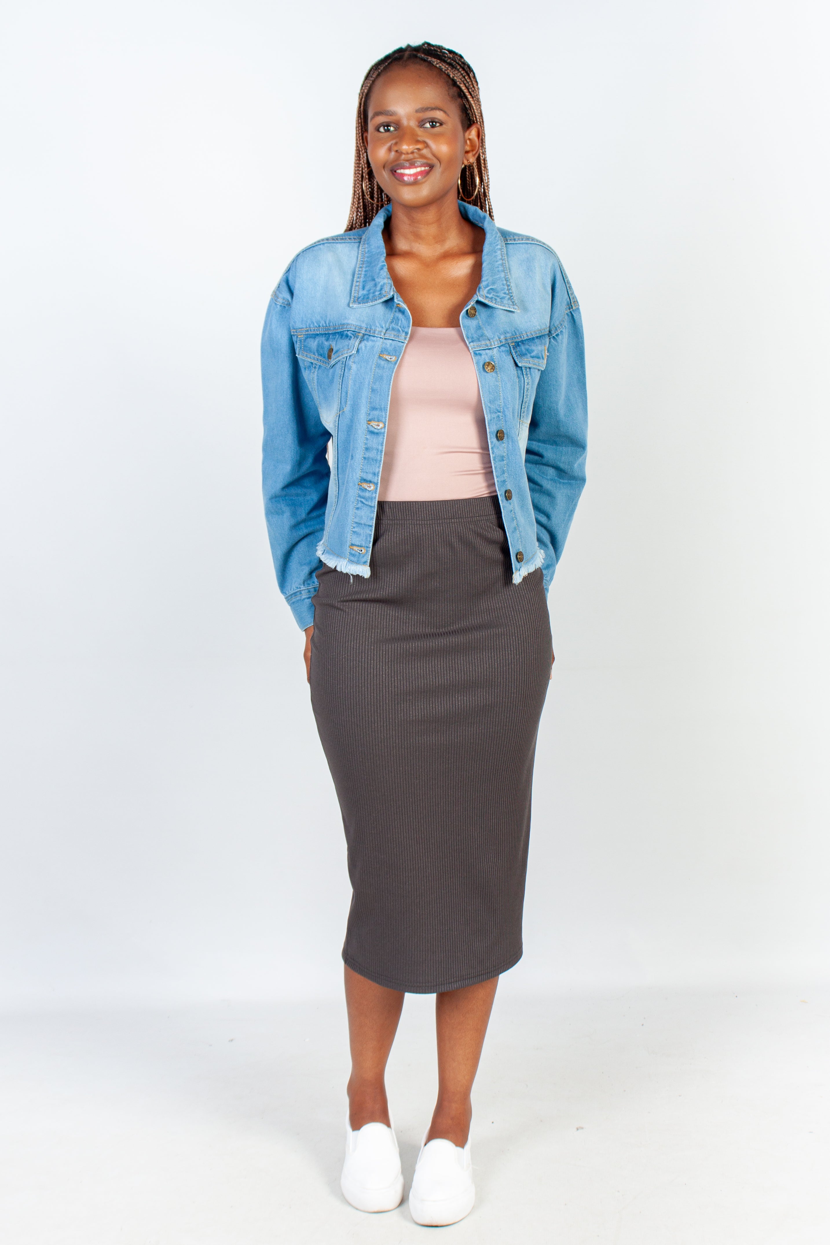 Denim. Collared neckline. Button down closure. Double chest pocket. Rigid bottom detailing. Buttoned cuffs. Cropped length.