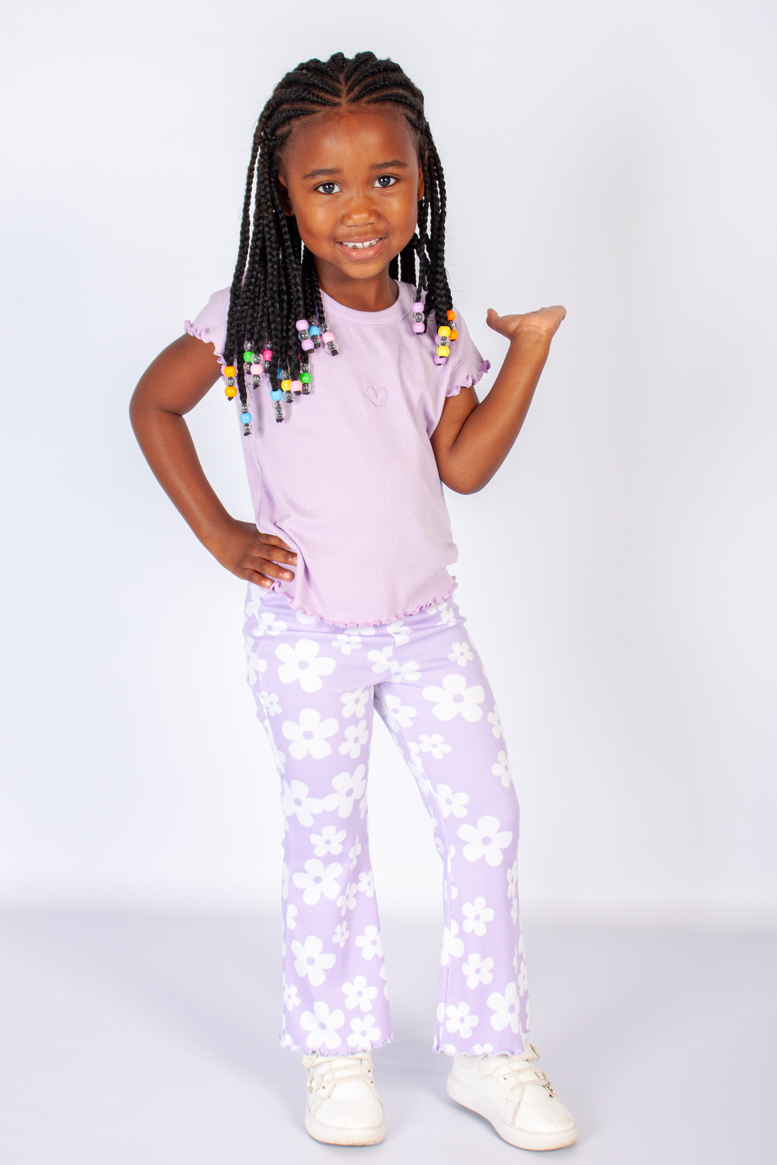 These leggings have a high-rise elasticated waistband with a rib detail. Flare leg.