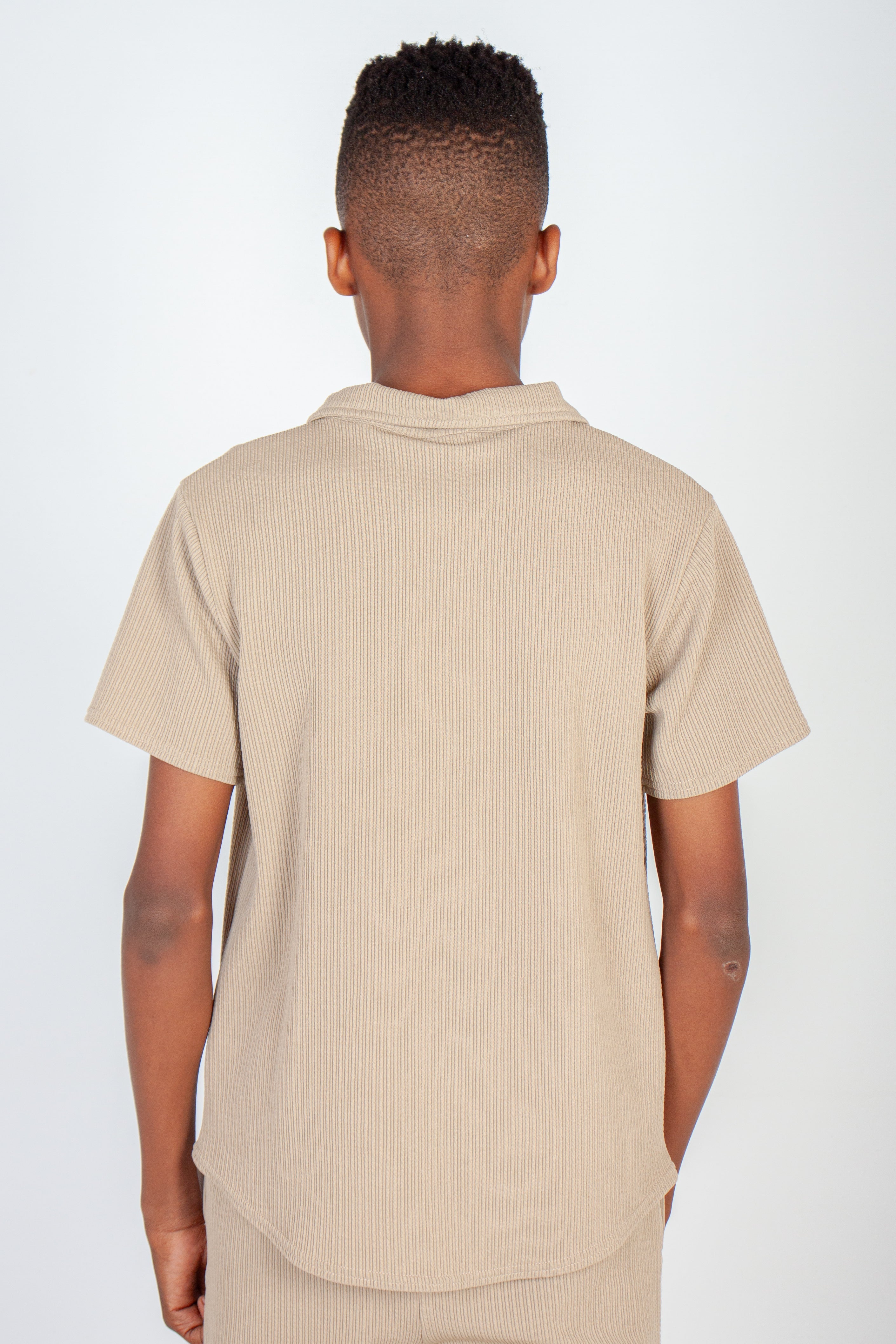 Textured shirt. Short sleeves. Button down front. Regular fit.