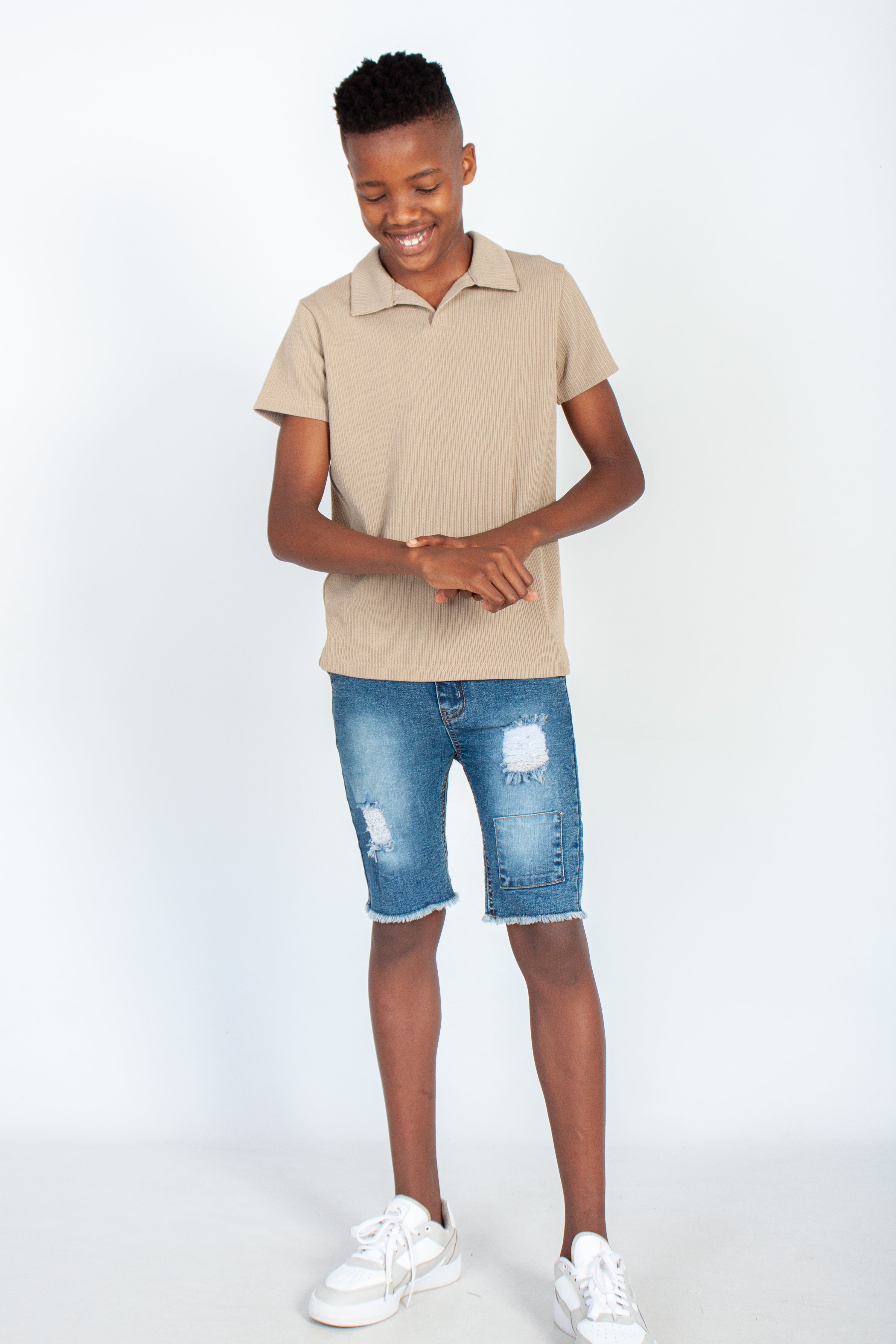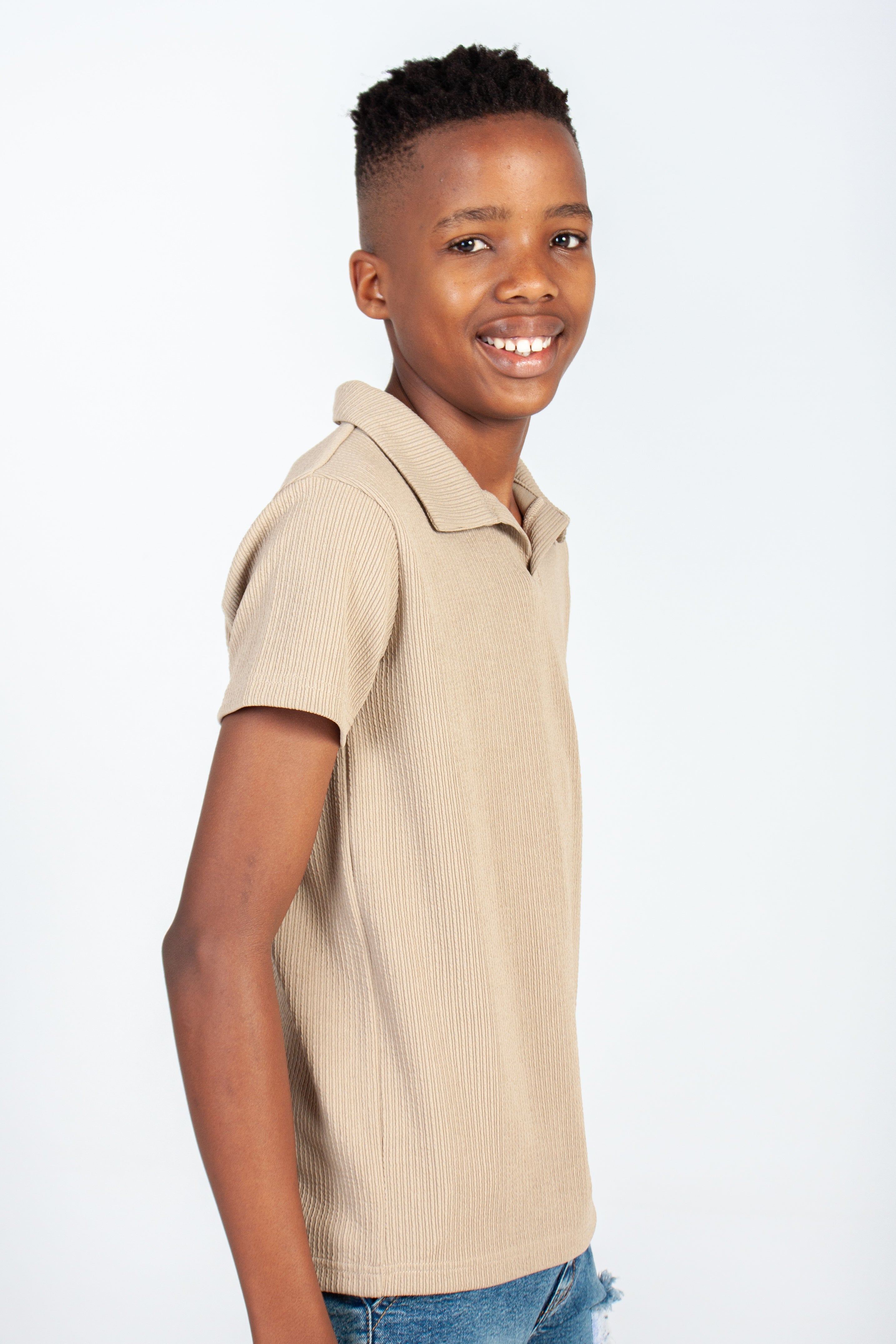 Textured golfer. Short sleeves. Collared neckline. Regular fit.