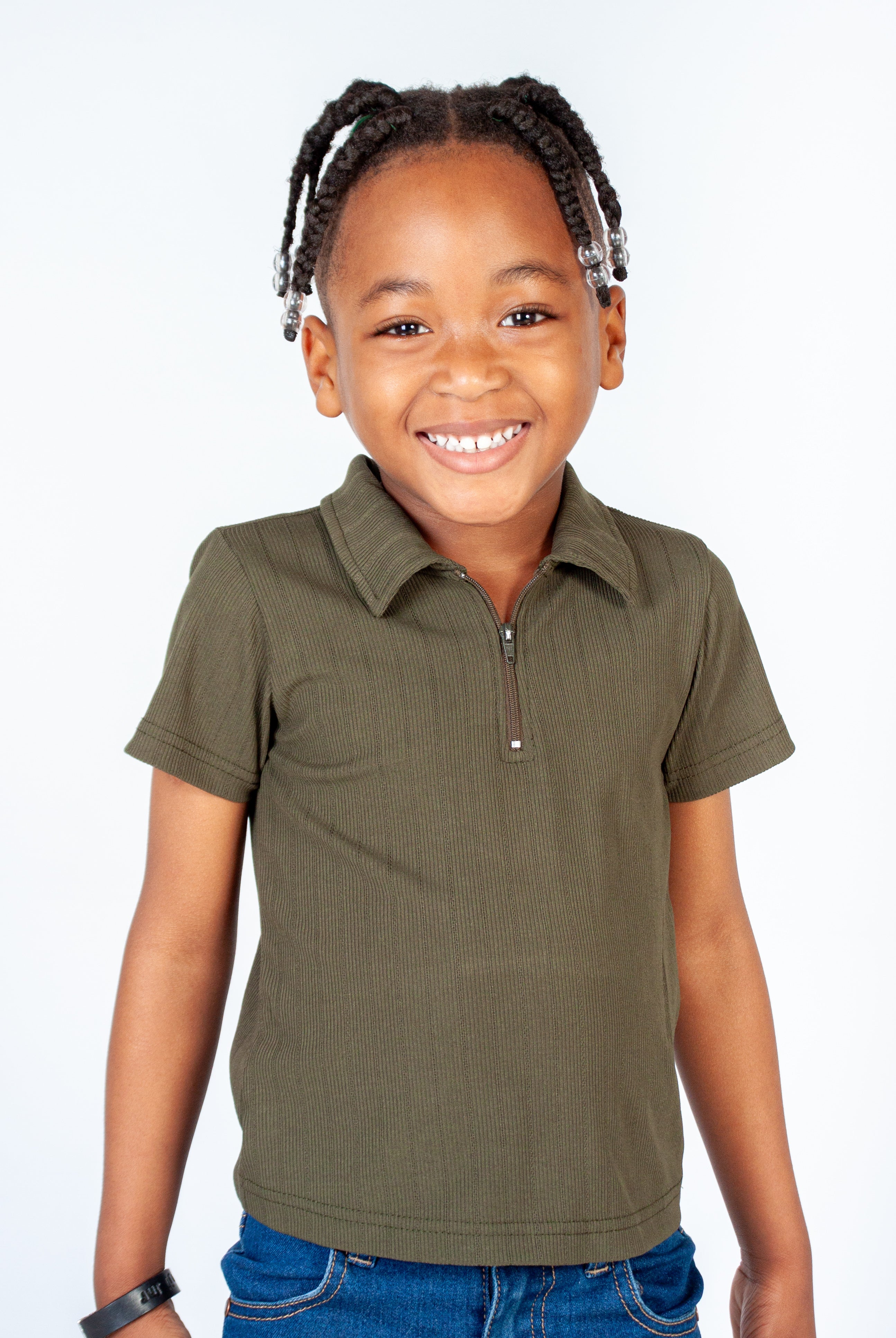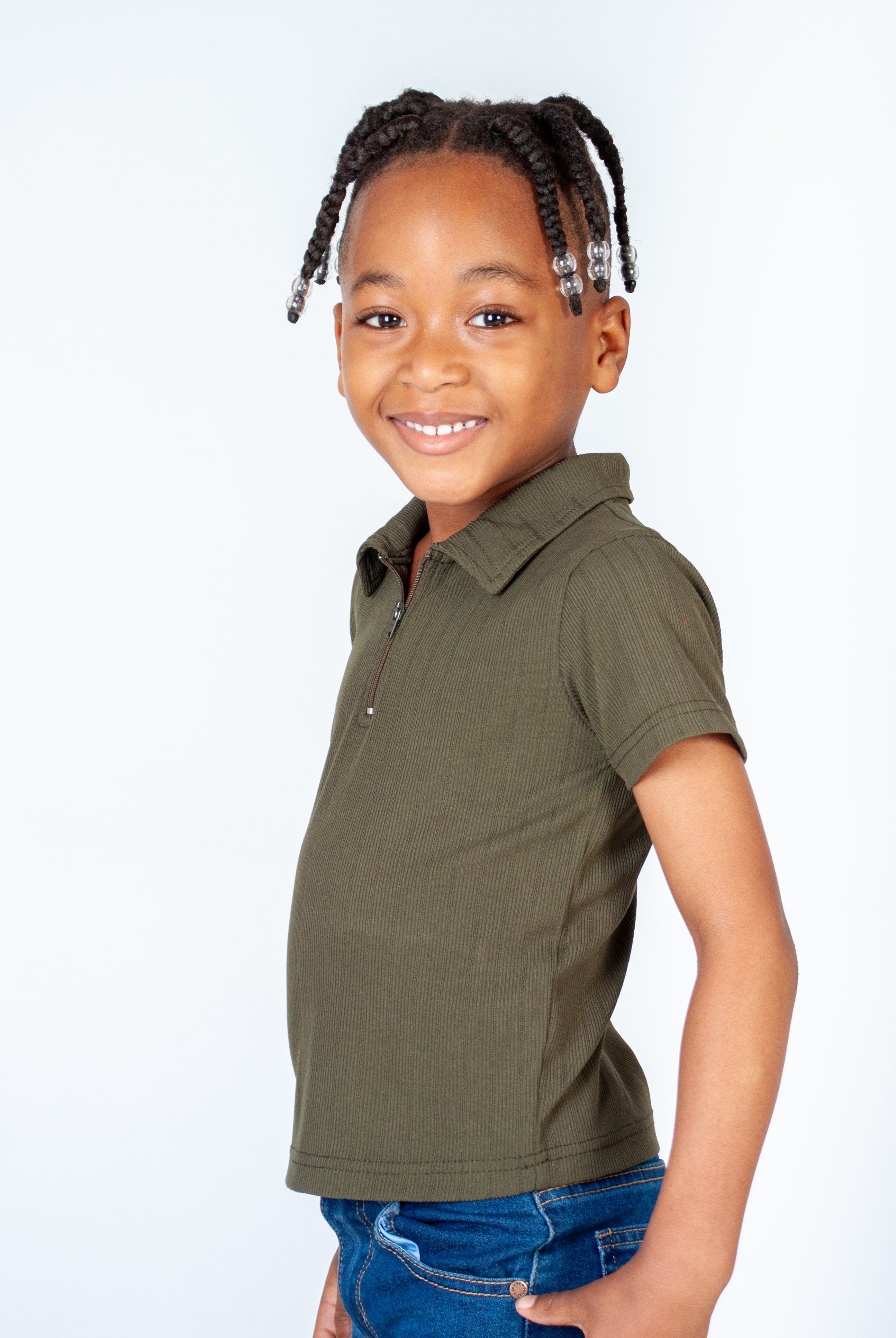 This textured golfer has a collared neckline with a quarter zip detail, short sleeves and a relaxed fit.