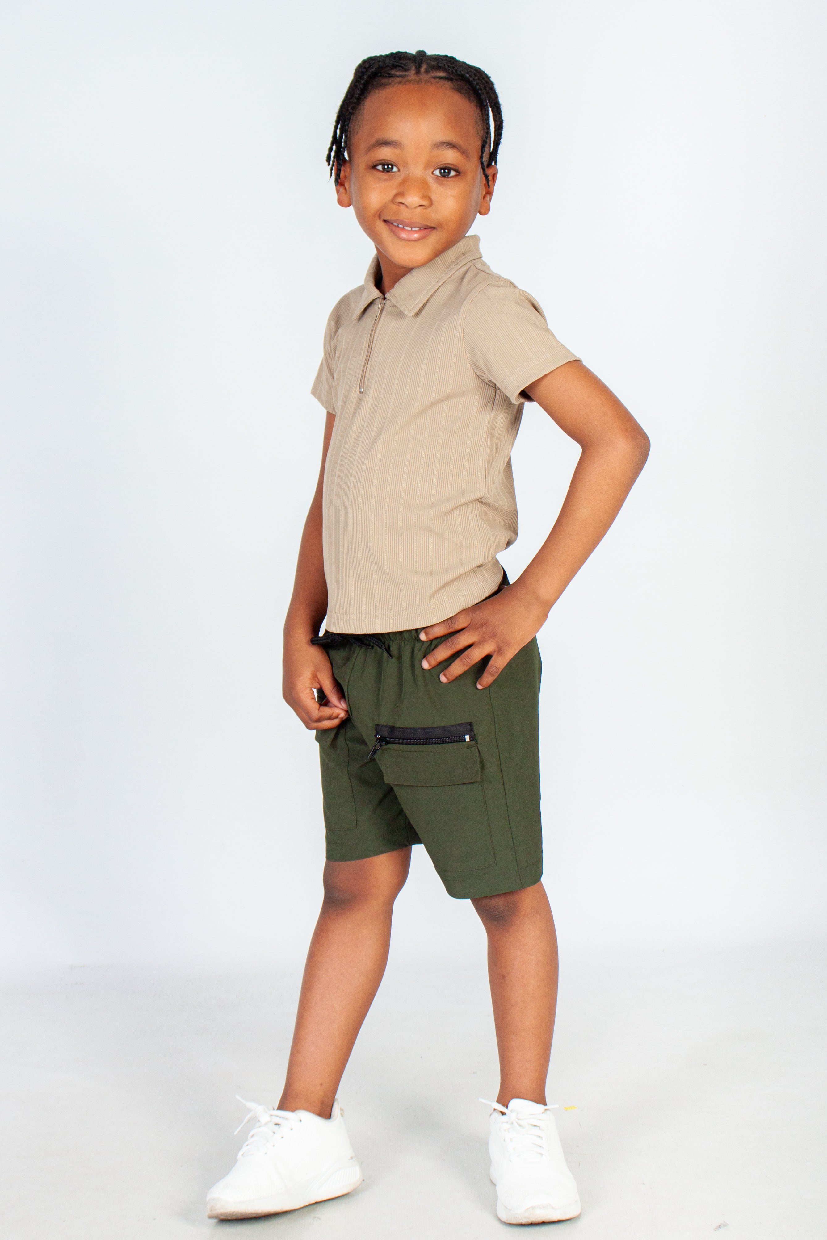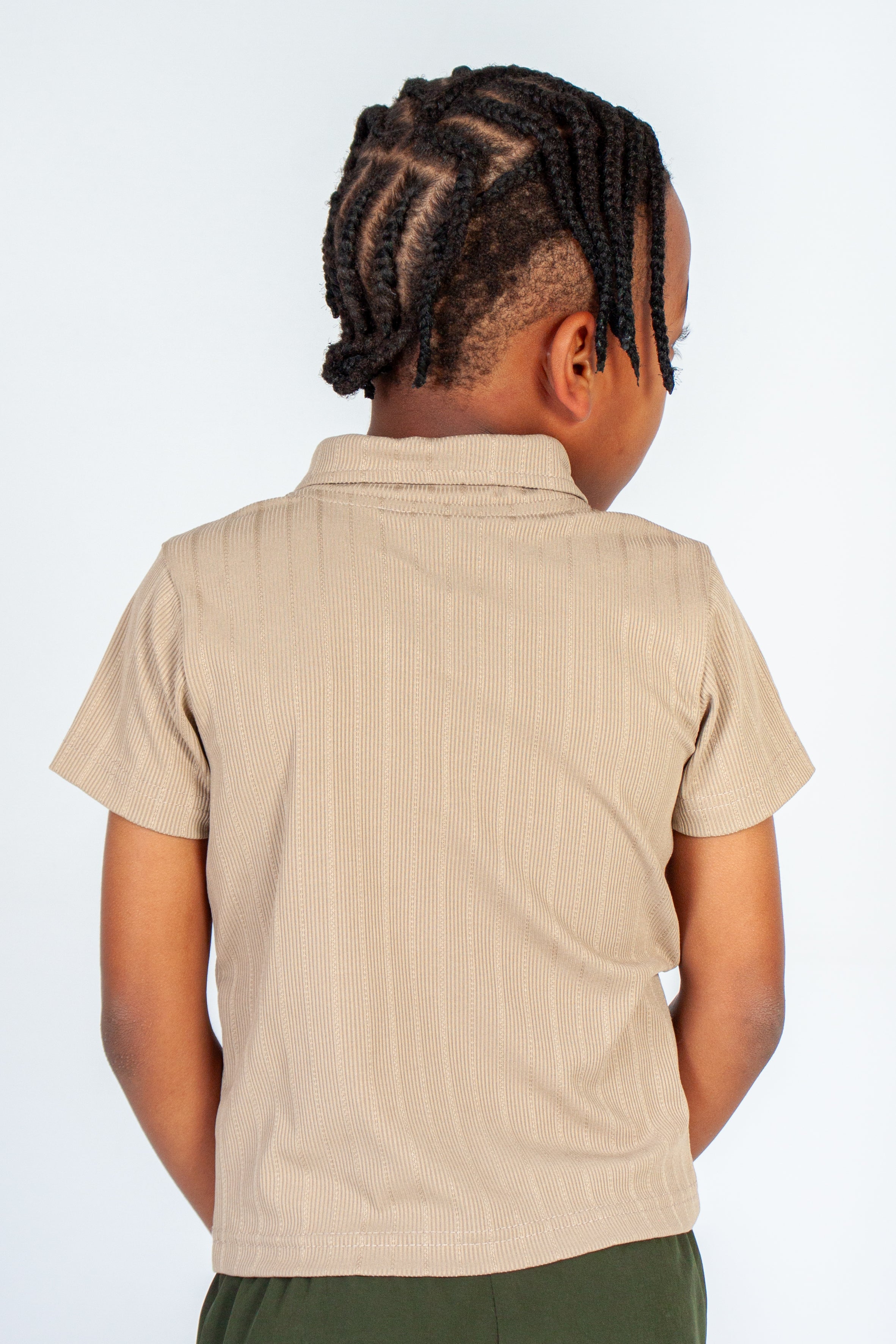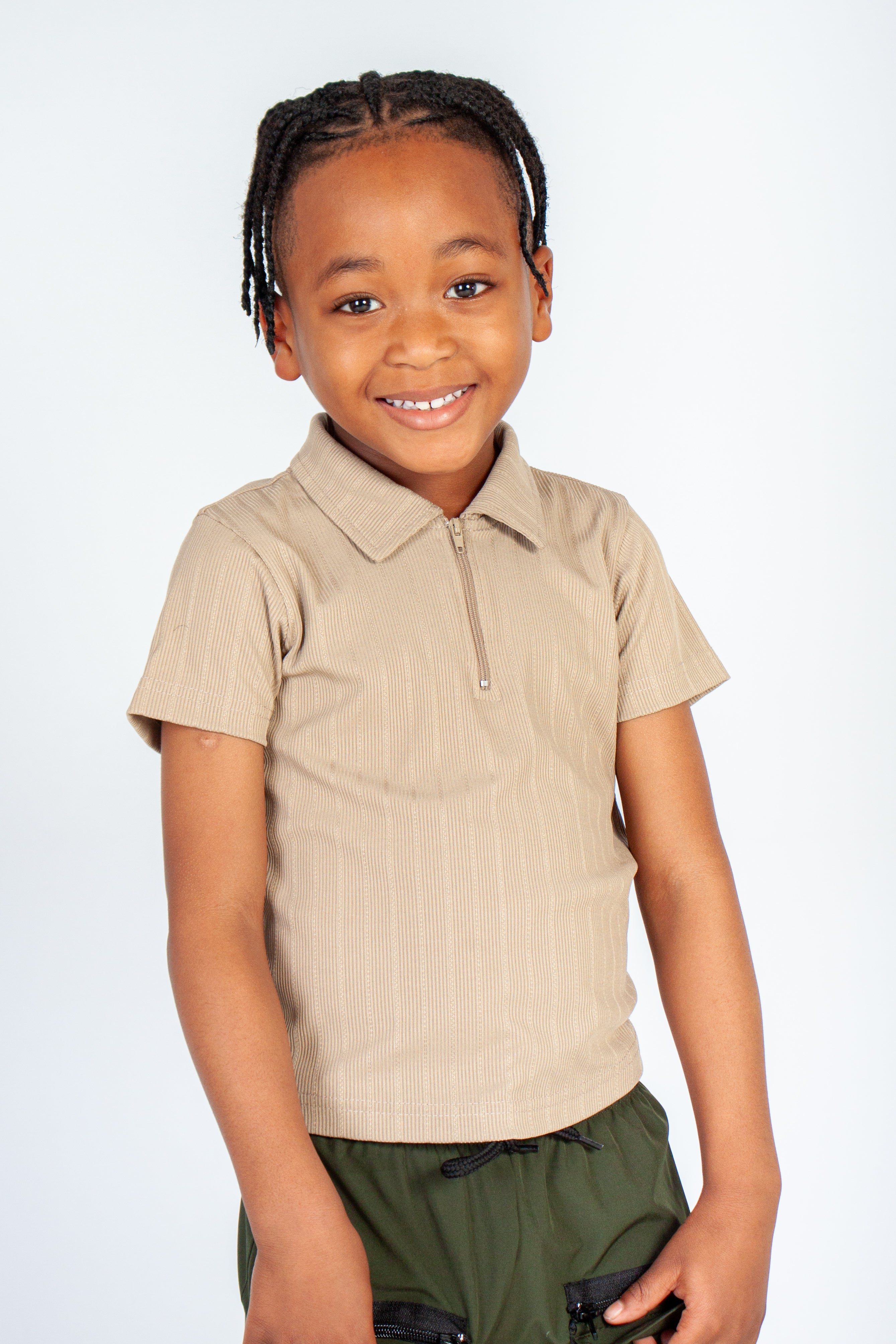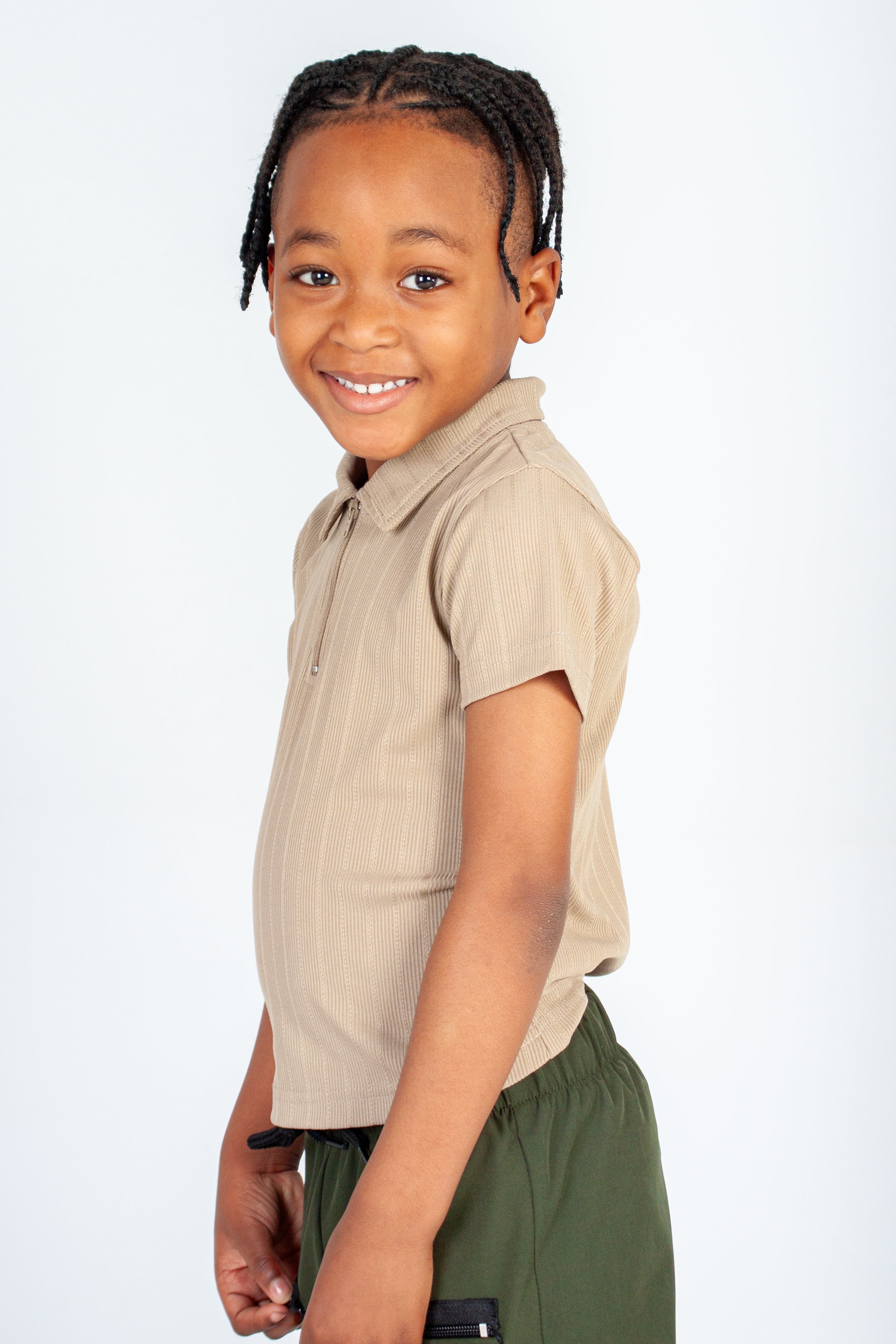 This textured golfer has a collared neckline with a quarter zip detail, short sleeves and a relaxed fit.