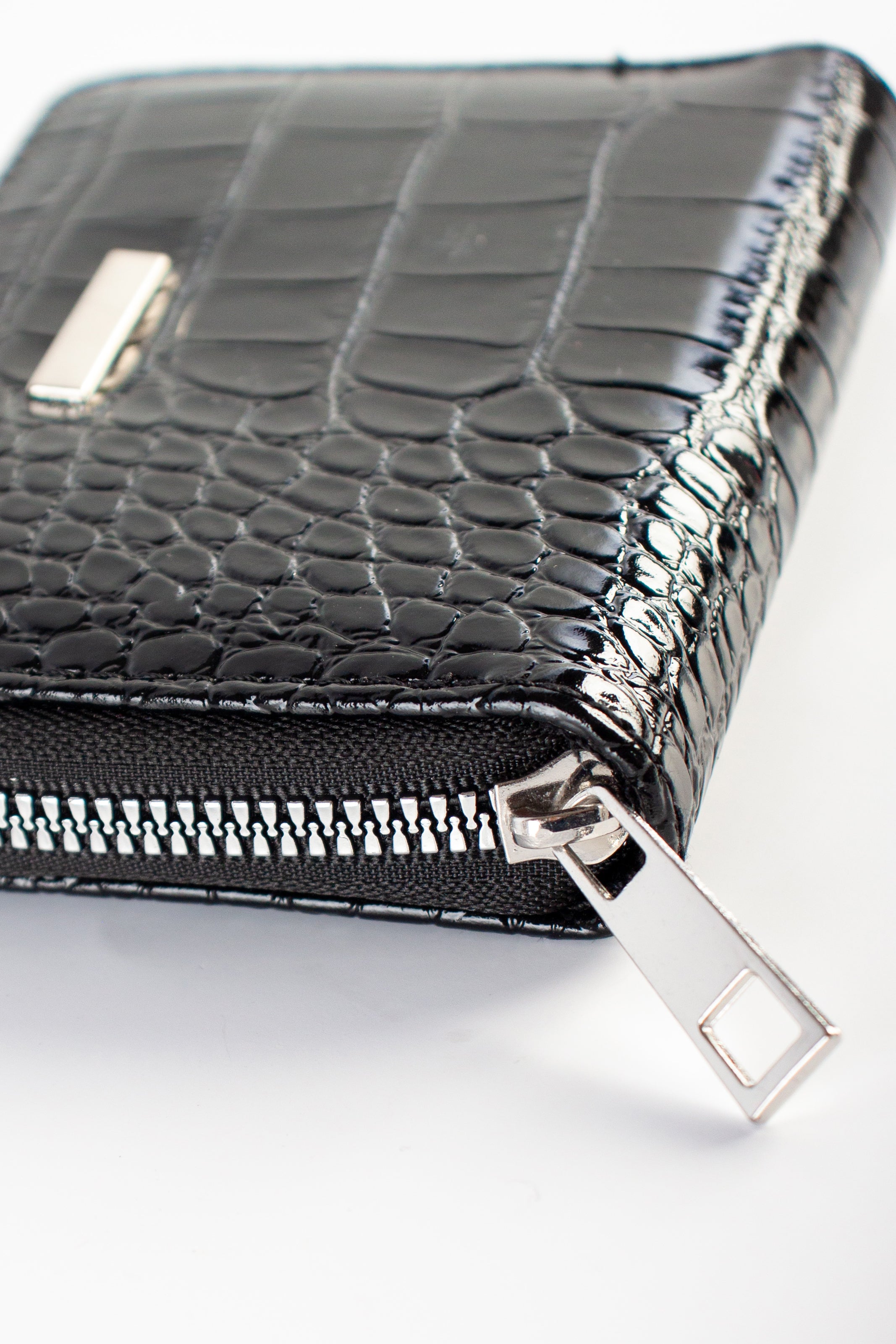 Keep it neat, tidy, and trendy with this mini wallet. This wallet has a zip-around closure with a coin compartment.