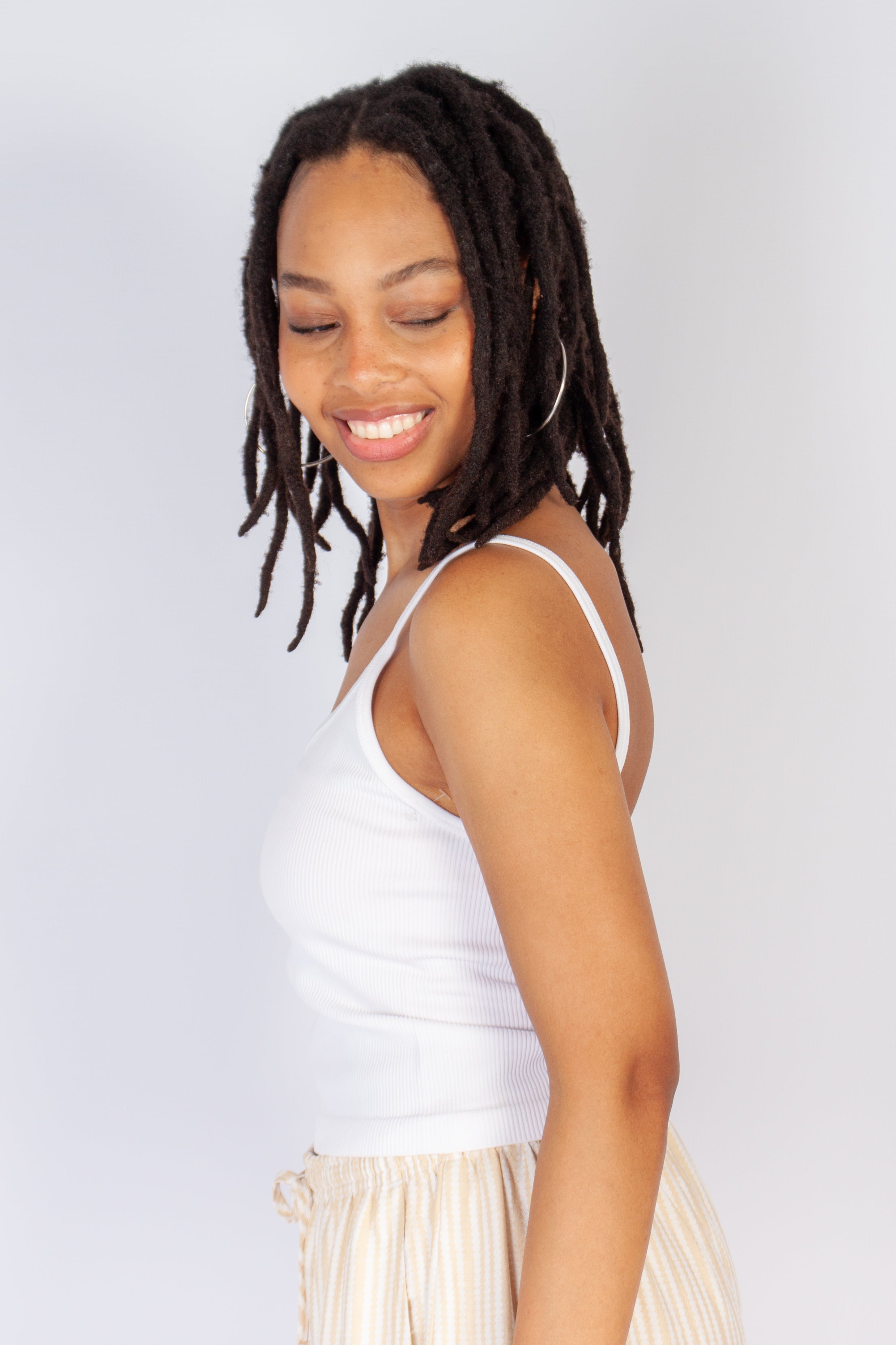 Perfect for an easy, everyday wear. This fitted strappy top has a crew neckline and a rib design.