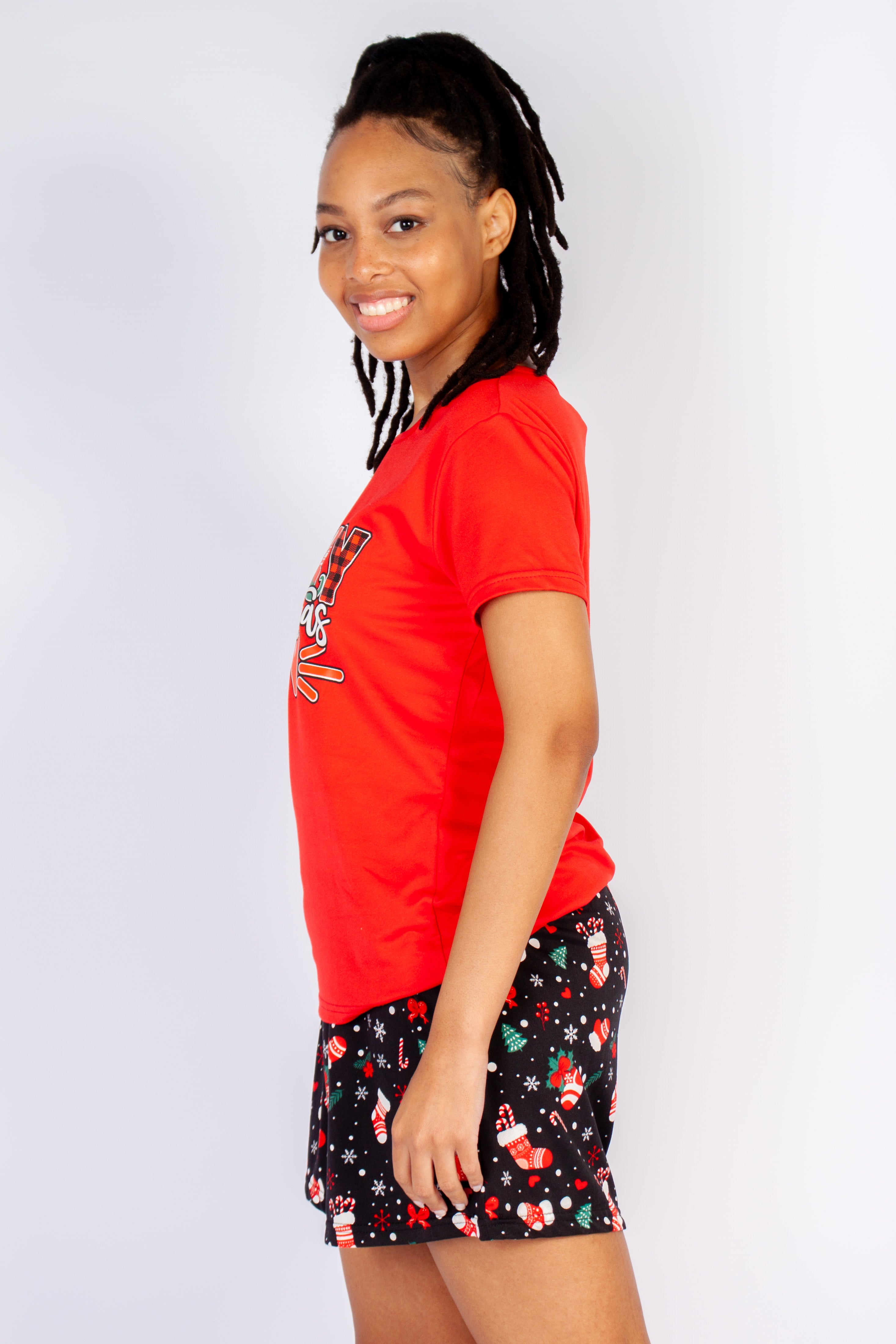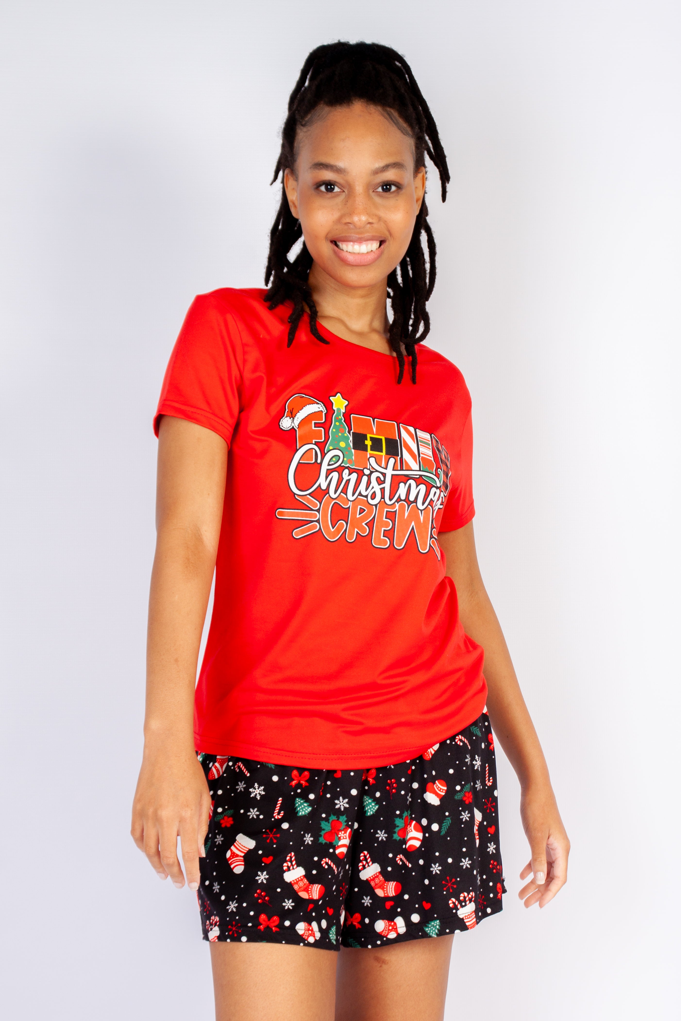 Perfect for lazy lounge days, these light and loose sleep sets feature a classic crew neckline, short sleeve top with a printed statement detail and shorts.