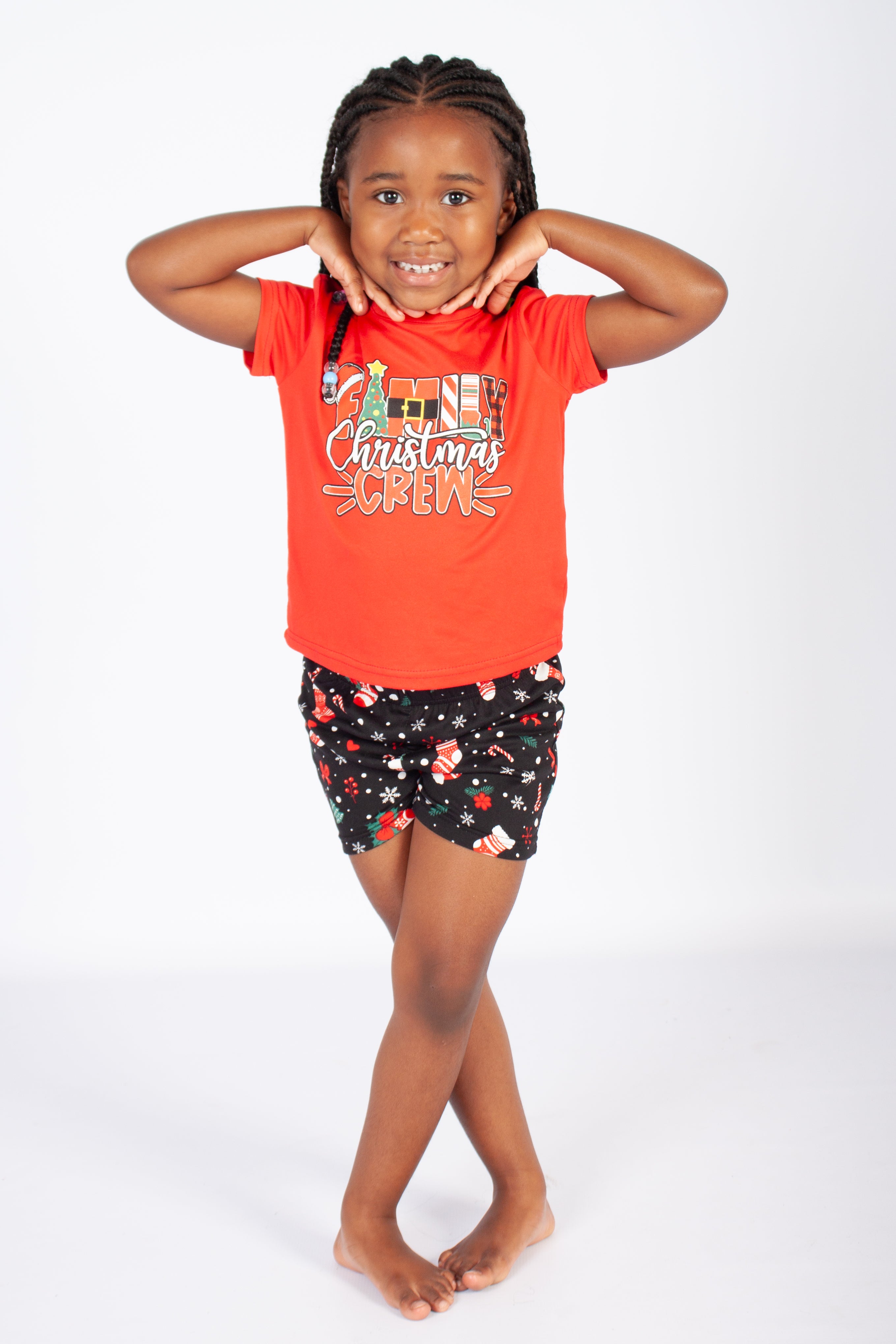 Perfect for lazy lounge days, these light and loose sleep sets feature a classic crew neckline  short sleeve top with a printed statement detail and shorts.