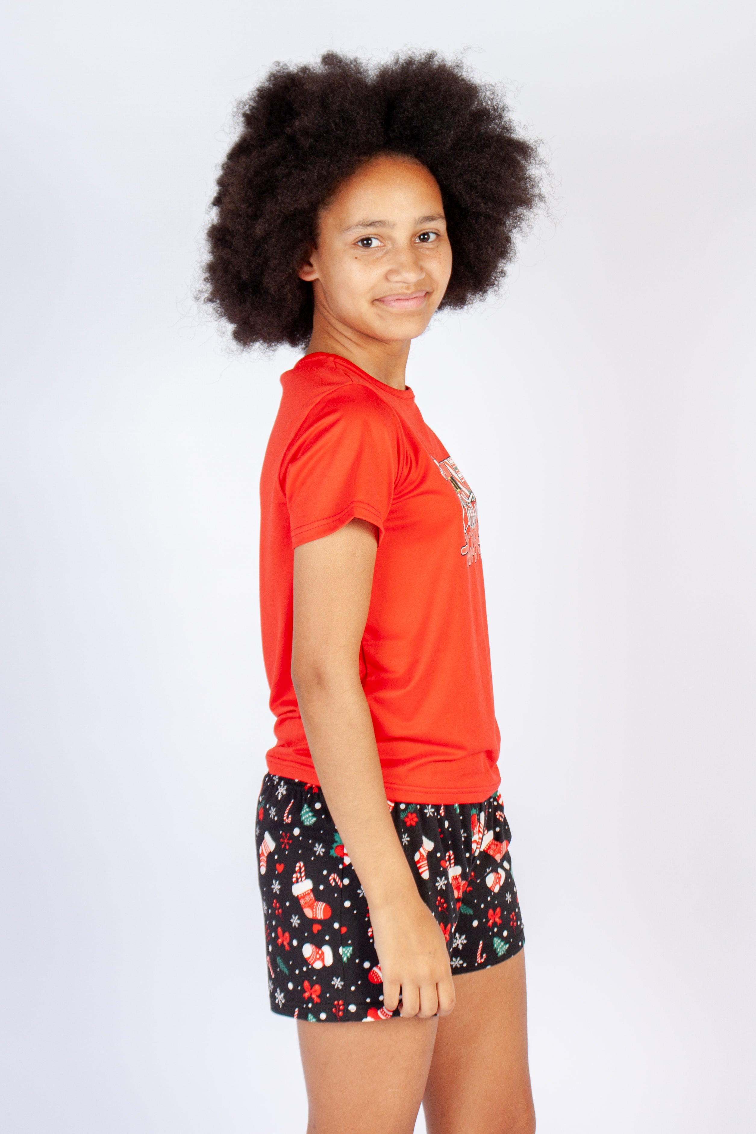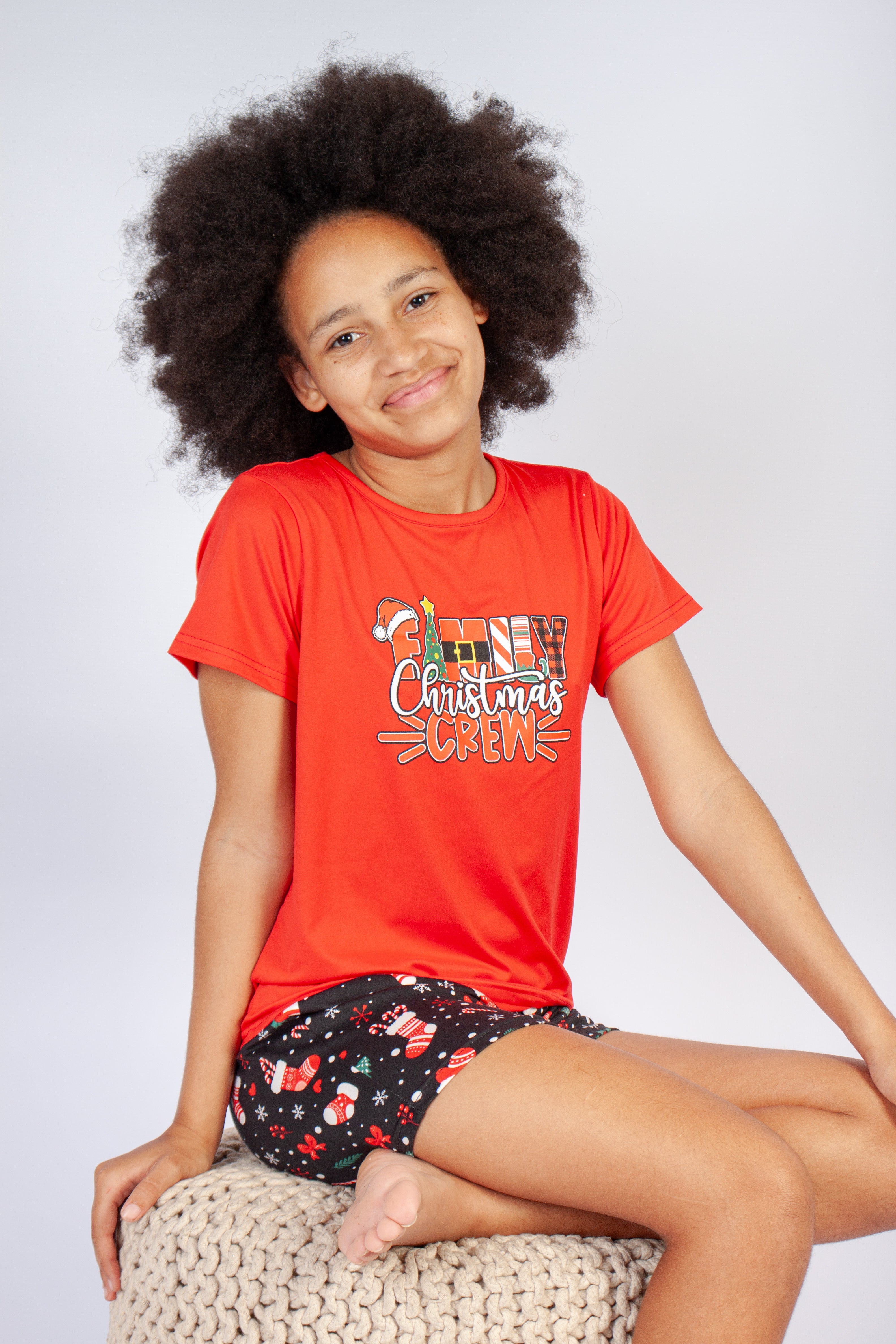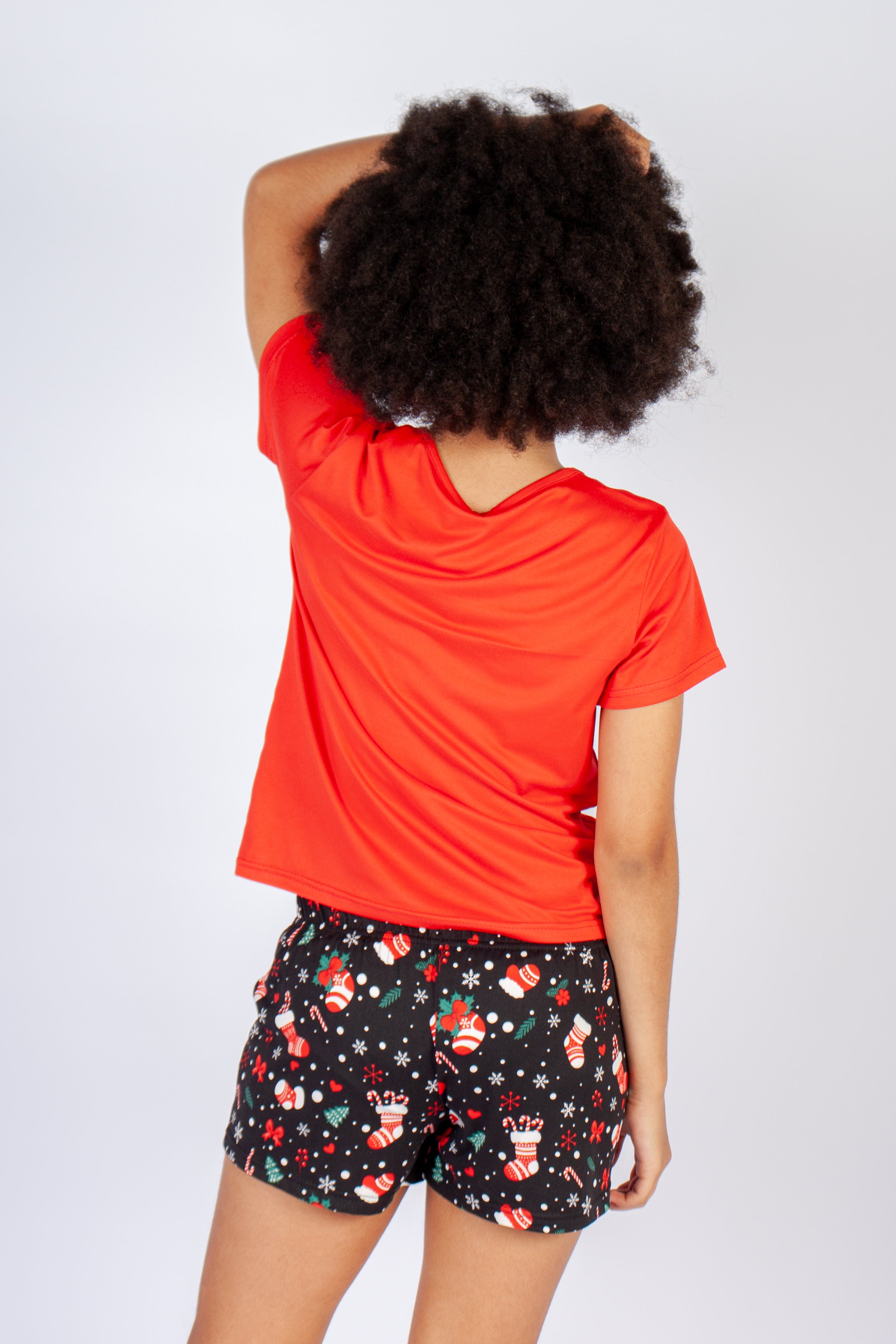 Perfect for lazy lounge days, these light and loose sleep sets feature a classic crew neckline  short sleeve top with a printed statement detail and shorts.