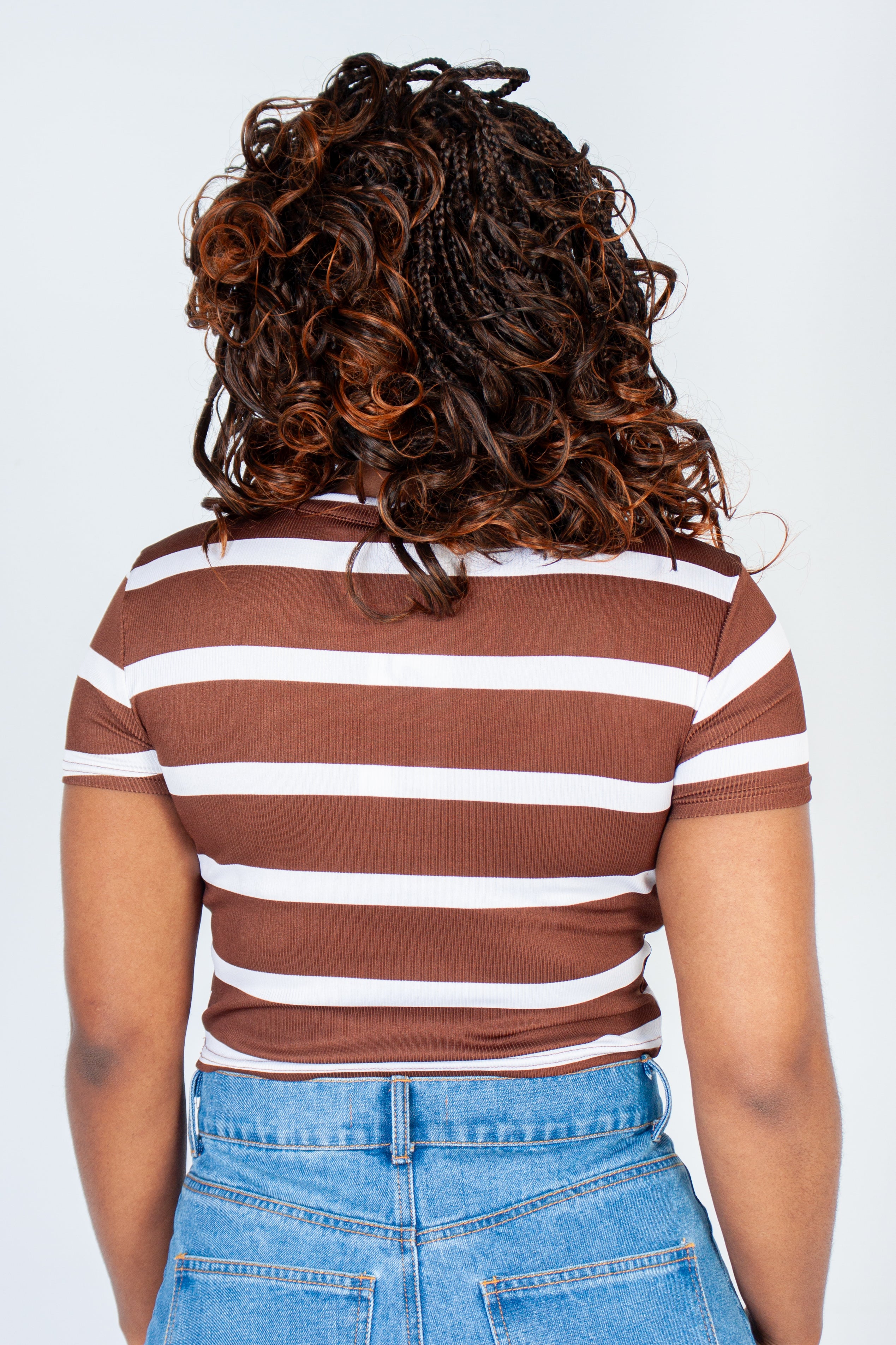 Perfect for an everyday wear! This easy-to-style cropped ribbed t-shirt has a crew neckline and short sleeves.