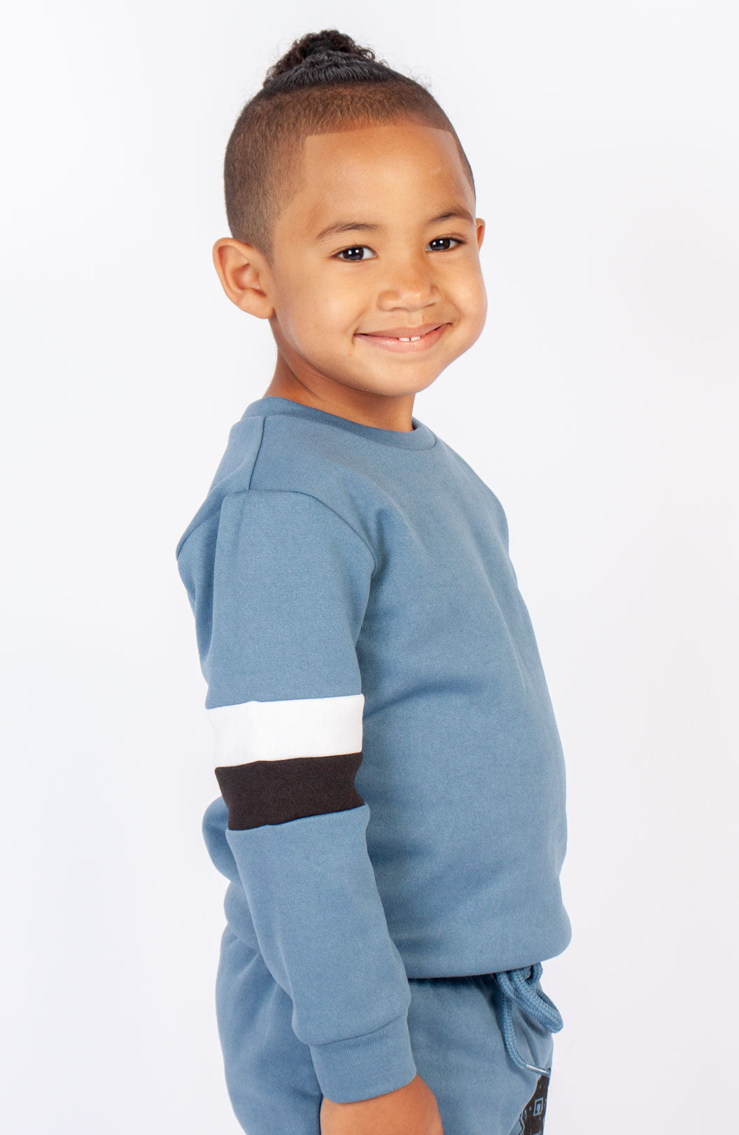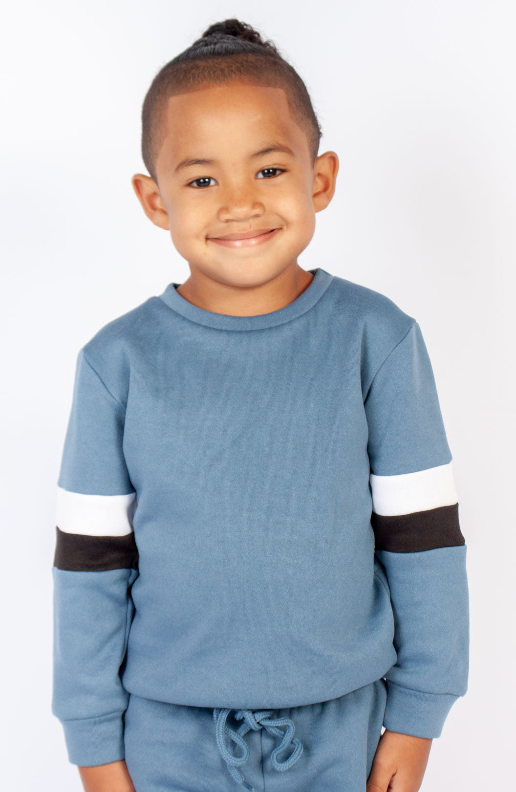 Basic sweater with a crew neckline. Cuffed sleeves and hem. Regular length and fit.