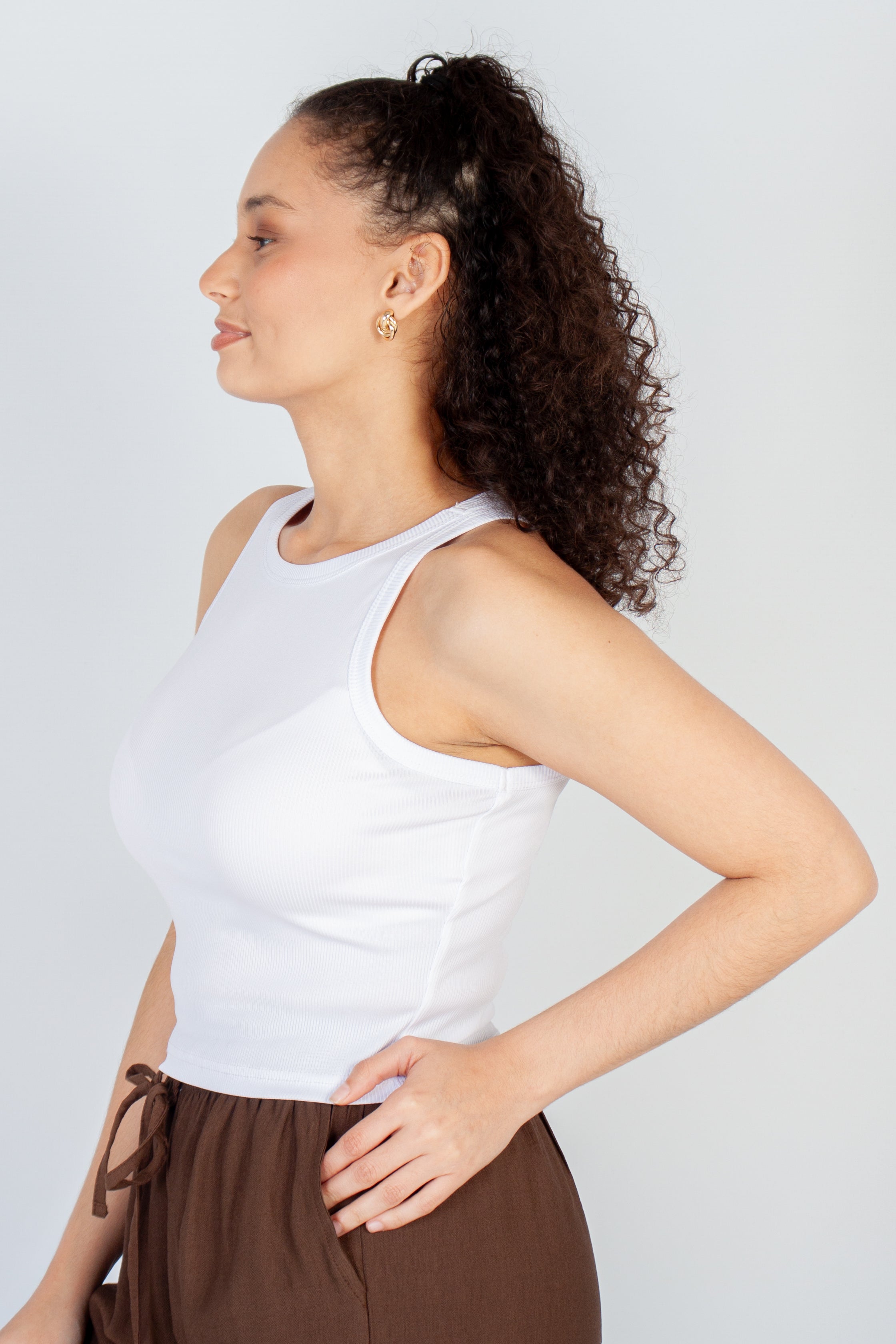 Perfect for an easy, everyday wear. This fitted top has a crew neckline and a rib design.