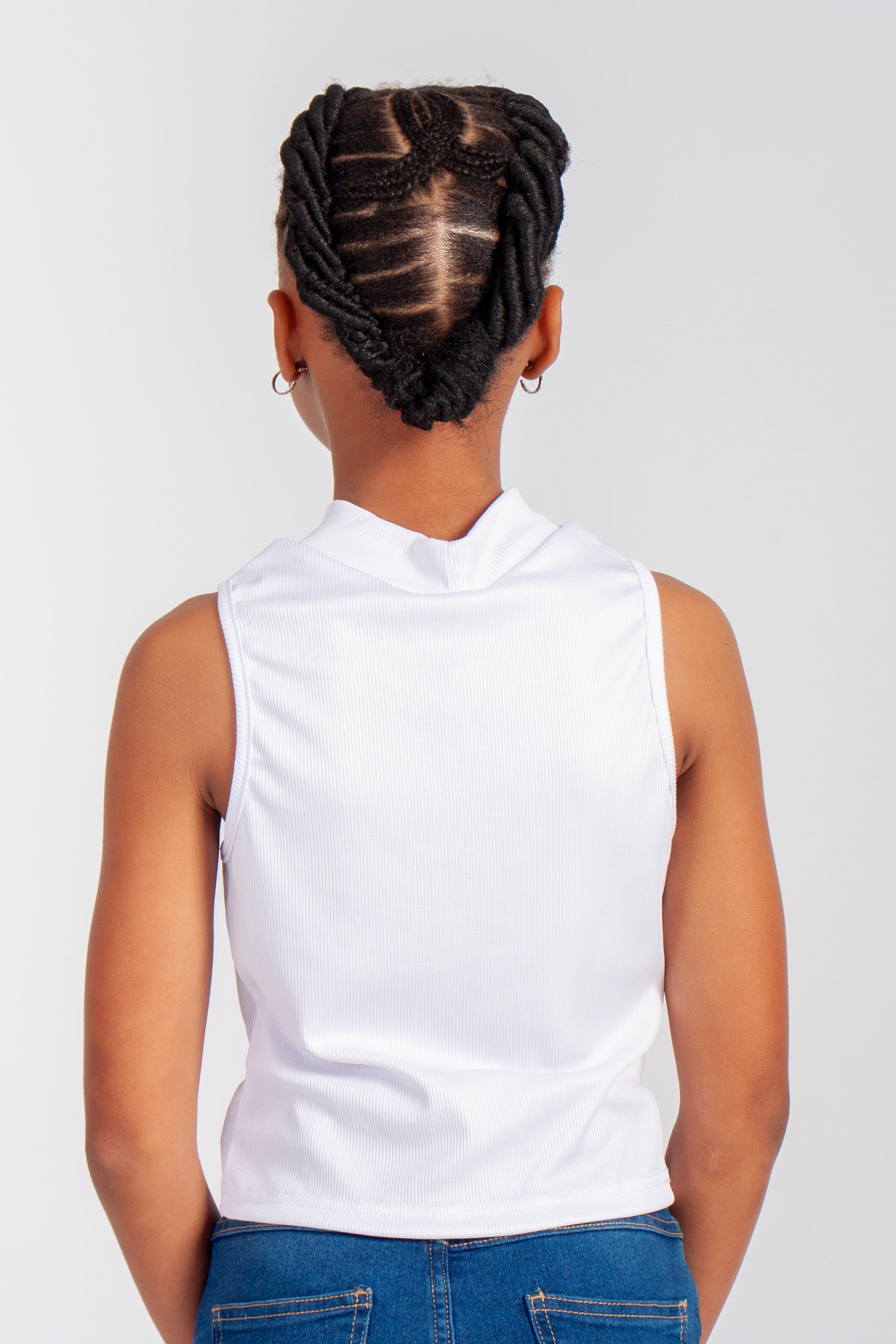 This turtle neck ribbed vest has a high neckline. Sleeveless with a regular length.