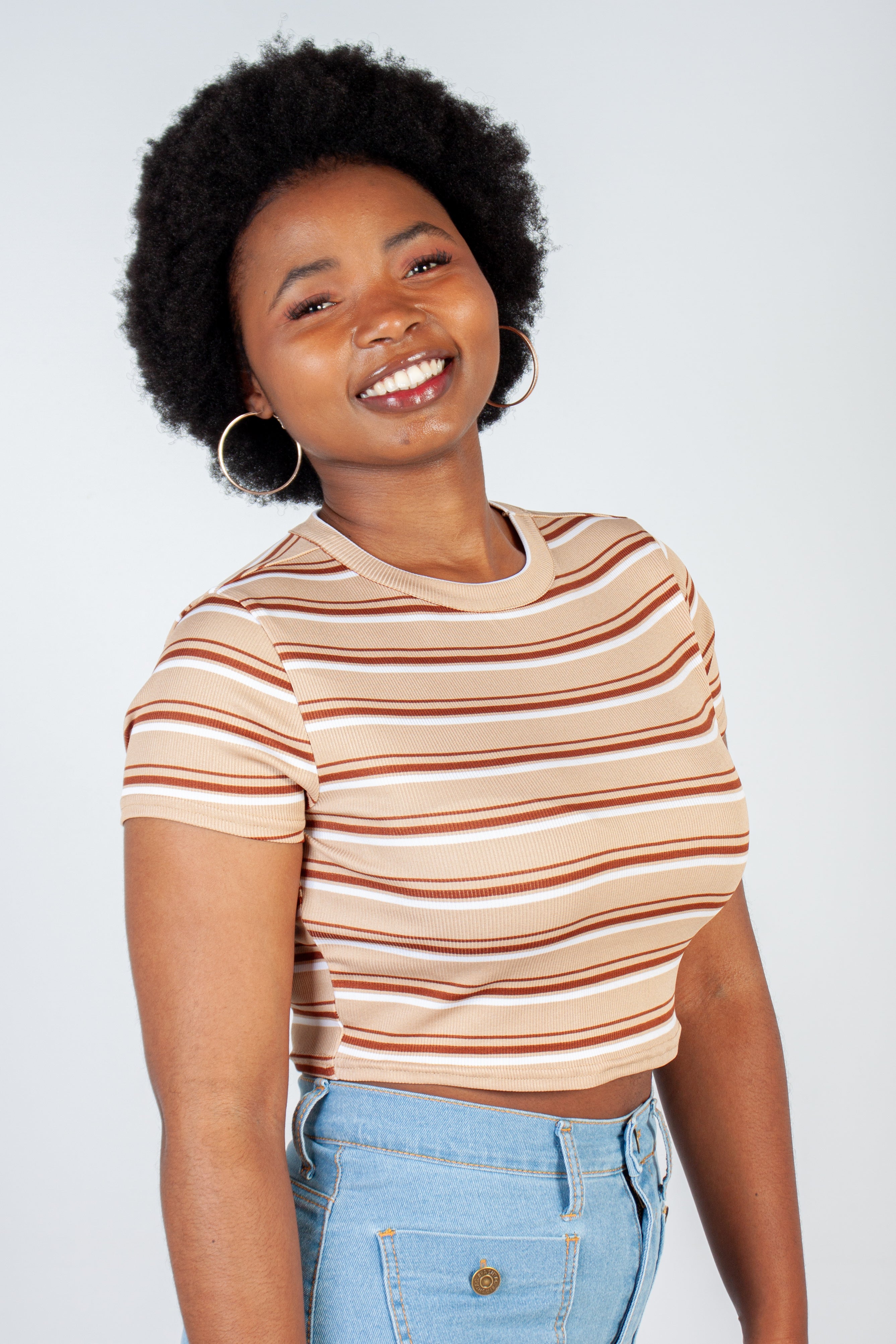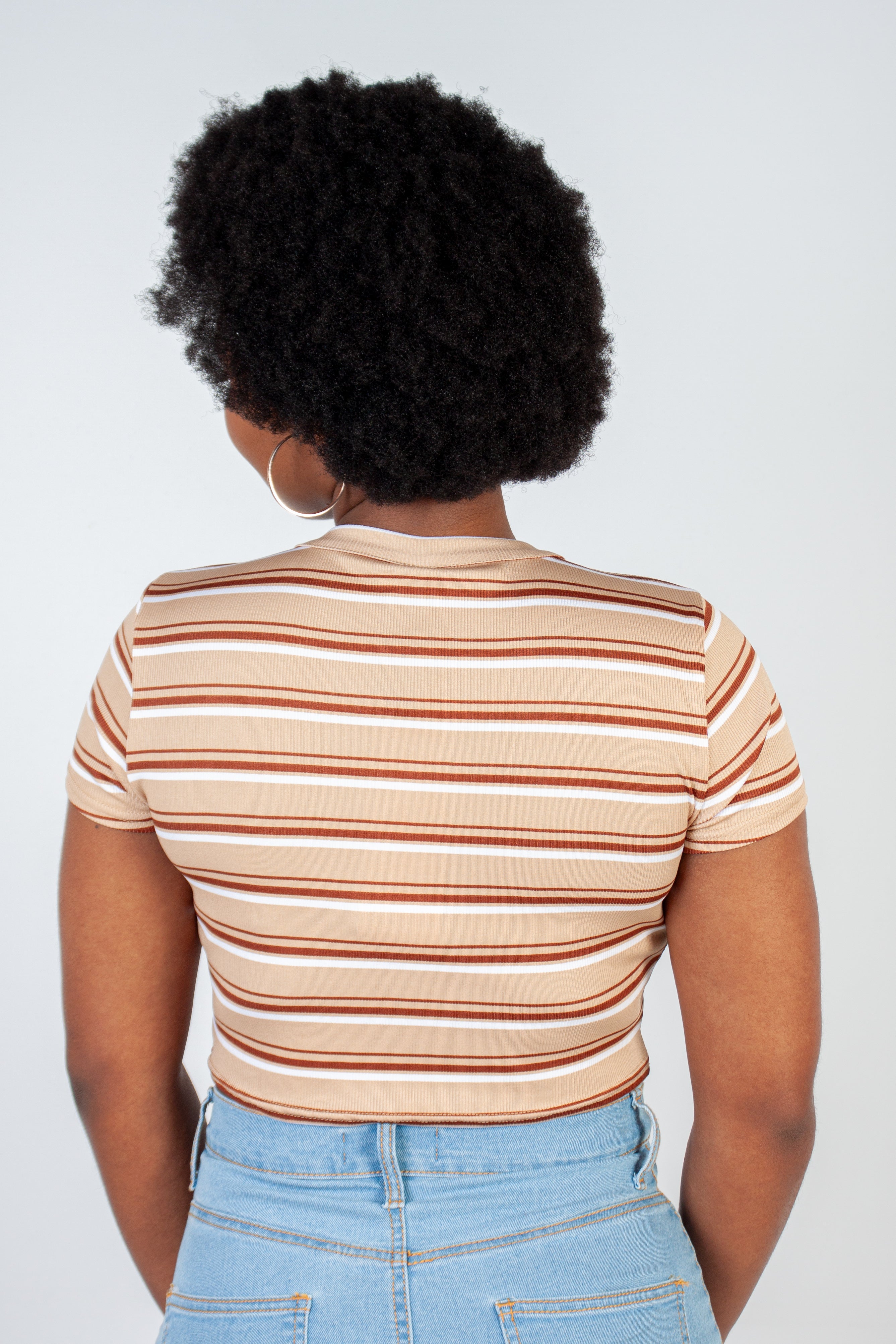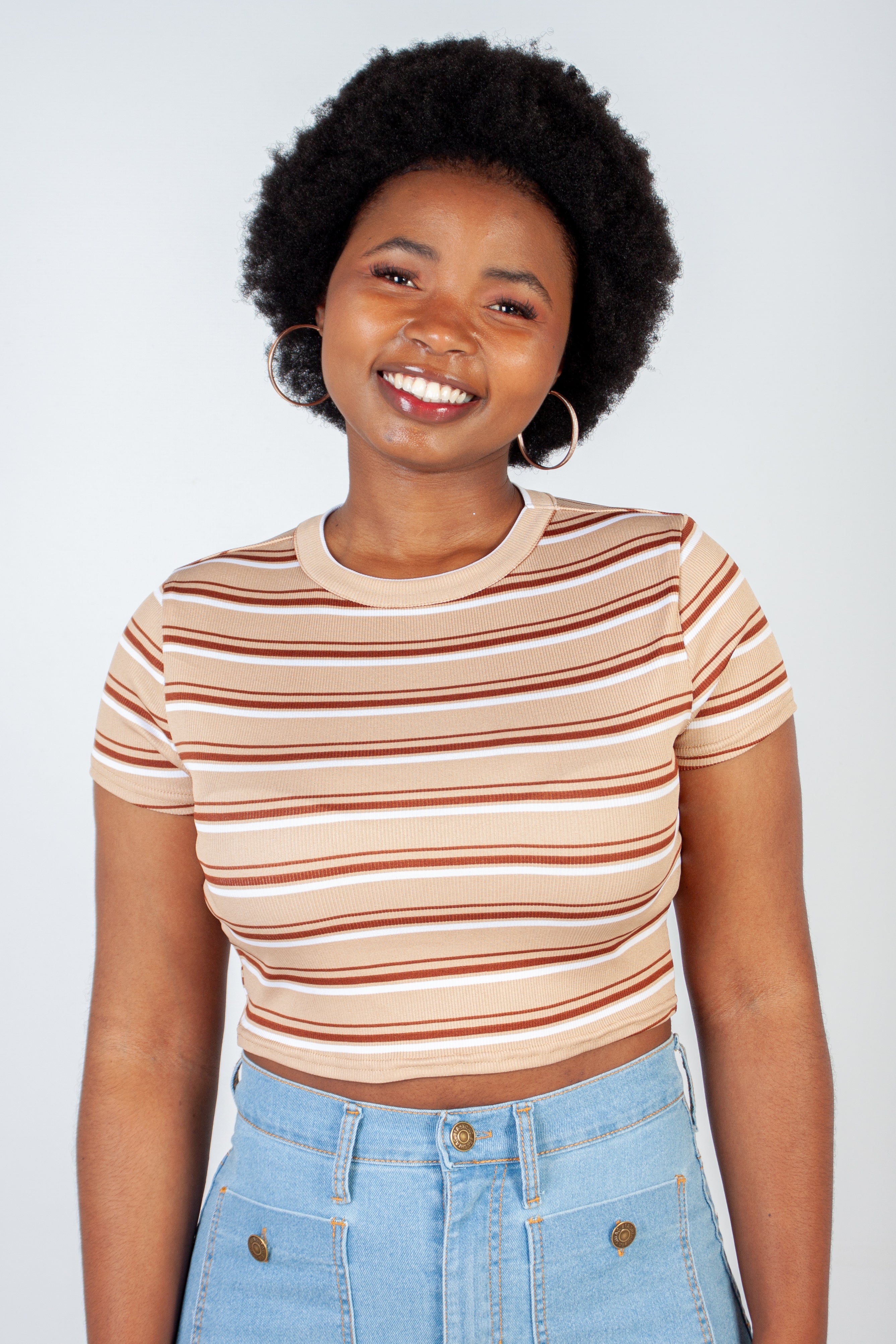 Perfect for an everyday wear! This easy-to-style cropped ribbed t-shirt has a crew neckline and short sleeves.